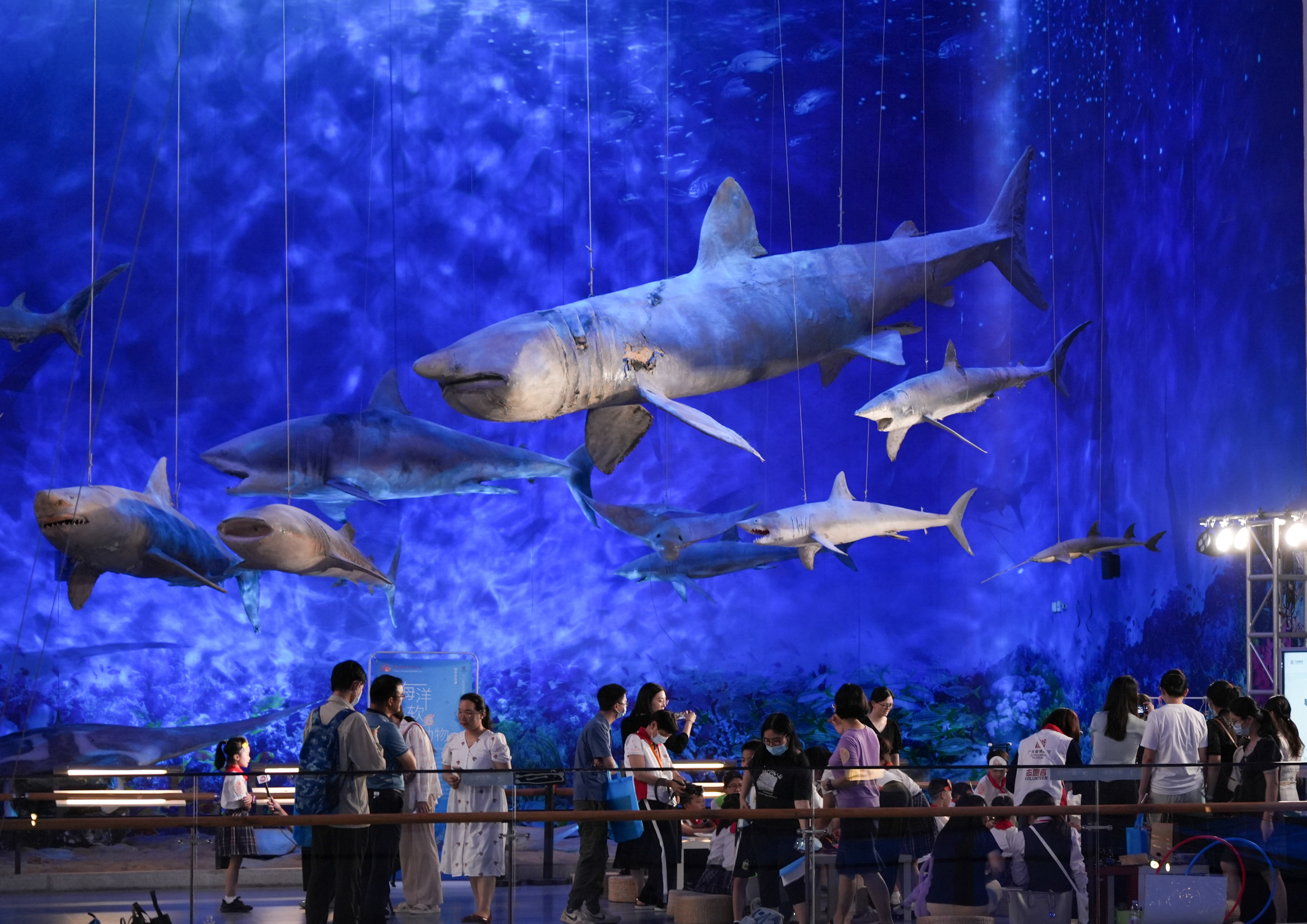 “孩子们,把鹦鹉螺的壳放在耳边,你是不是听到了一些悄悄话?”活动当天,广州日报·新花城记者跟随天河第一小学的孩子们来到省博自然展厅,体验《海洋软体动物》研学课。展厅内悬挂着鲨鱼、魔鬼鱼等真实的海洋生物标本,让孩子们仿佛置身于海洋世界中,他们一边听省博导师的讲解,一边在研学手册上认真地记录。在展厅旁的“课室”里,学校老师让孩子们先寻找小学课本里贝类的内容,再让孩子们探索贝类世界,最后更把一个个贝壳串成风铃,倾听大海的声音……“沉浸式”的课堂氛围、情景式的学习体验,真正的研而有学。