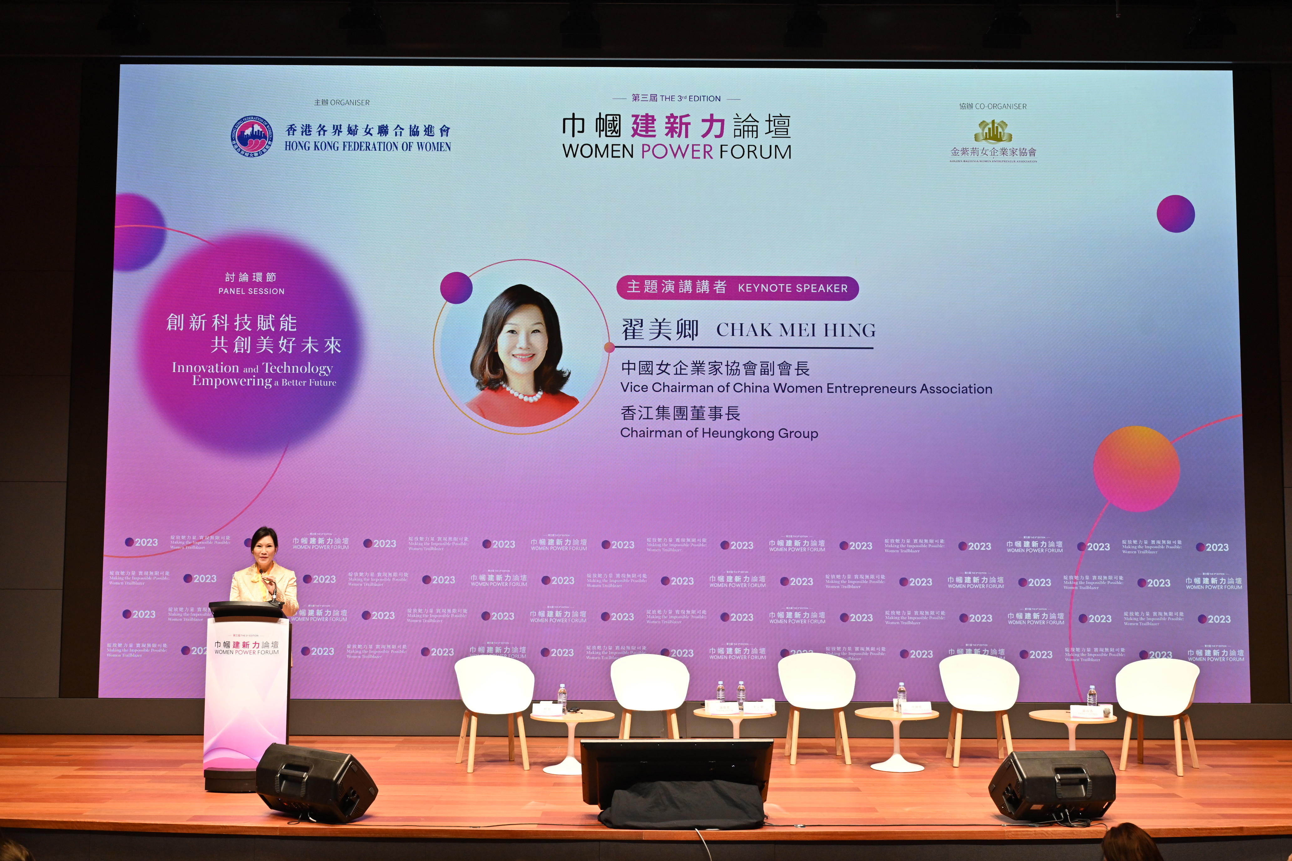香港妇协于2023年6月30日在香港故宫文化博物馆香港赛马会演讲厅,举办以“绽放她力量,实现无限可能”为主题的第三届巾帼建新力论坛。论坛汇集内地和港澳不同领域的非凡女性,就女性在科技创新中如何贡献“她力量”展开讨论。全国政协委员、中国女企业家协会副会长、香江集团总裁翟美卿受邀出席论坛并做主题演讲。