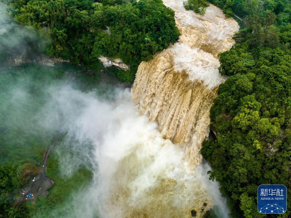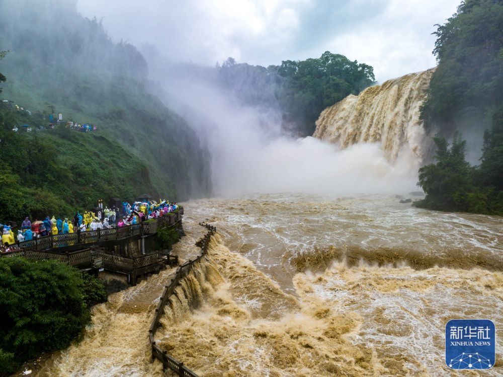 受持续降雨及上游来水影响,位于贵州省安顺市的黄果树瀑布迎来2023年入汛最大水量。据贵州省安顺市水文水资源局实测数据显示,当日黄果树瀑布流量最高时达每秒427立方米。
