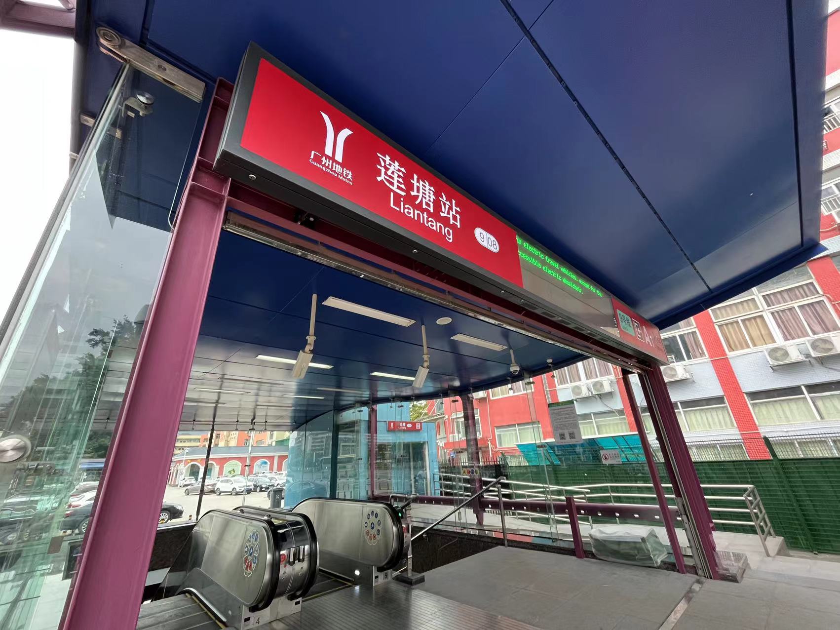 从广州市区搭乘3号线一路向北,经过高增站转乘九号线,沿着飞鹅岭方向再乘坐约莫10分钟车程,便可以直达“莲塘”地铁站,因为该站属于花都区新华街莲塘村范围内,故以村名命名站点。