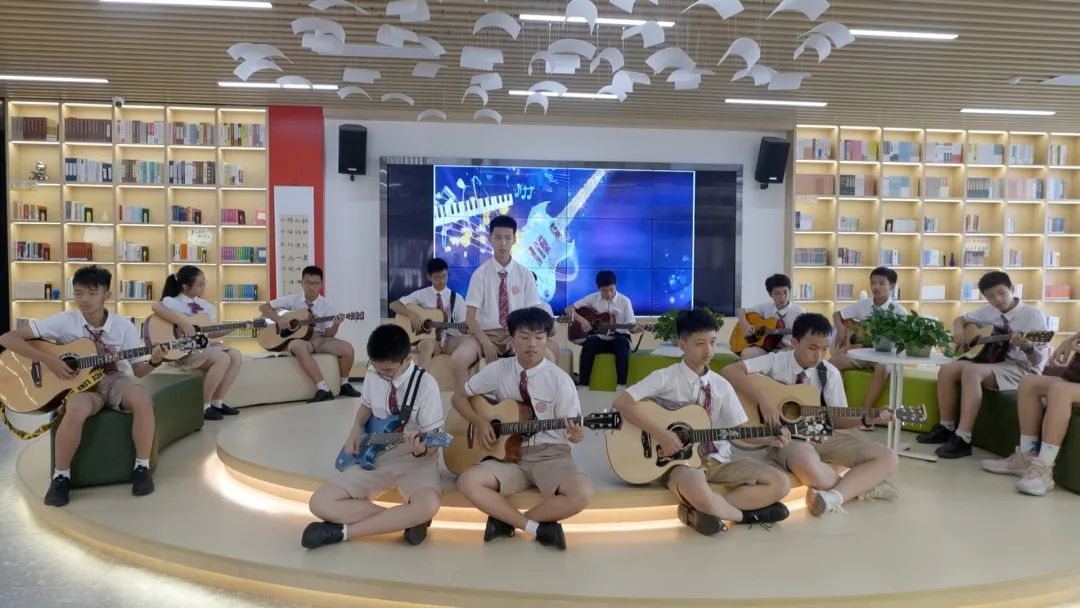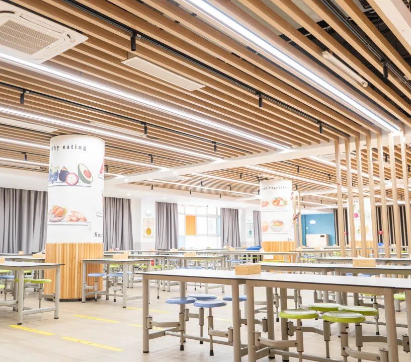 令人眼前一亮的是,这还是一所“建在图书馆里的学校”。除了图书馆,走廊里、餐厅外、楼梯间,触手可及都是书。同时,举办各类阅读活动,以阅读为底色,让学生都爱上阅读。