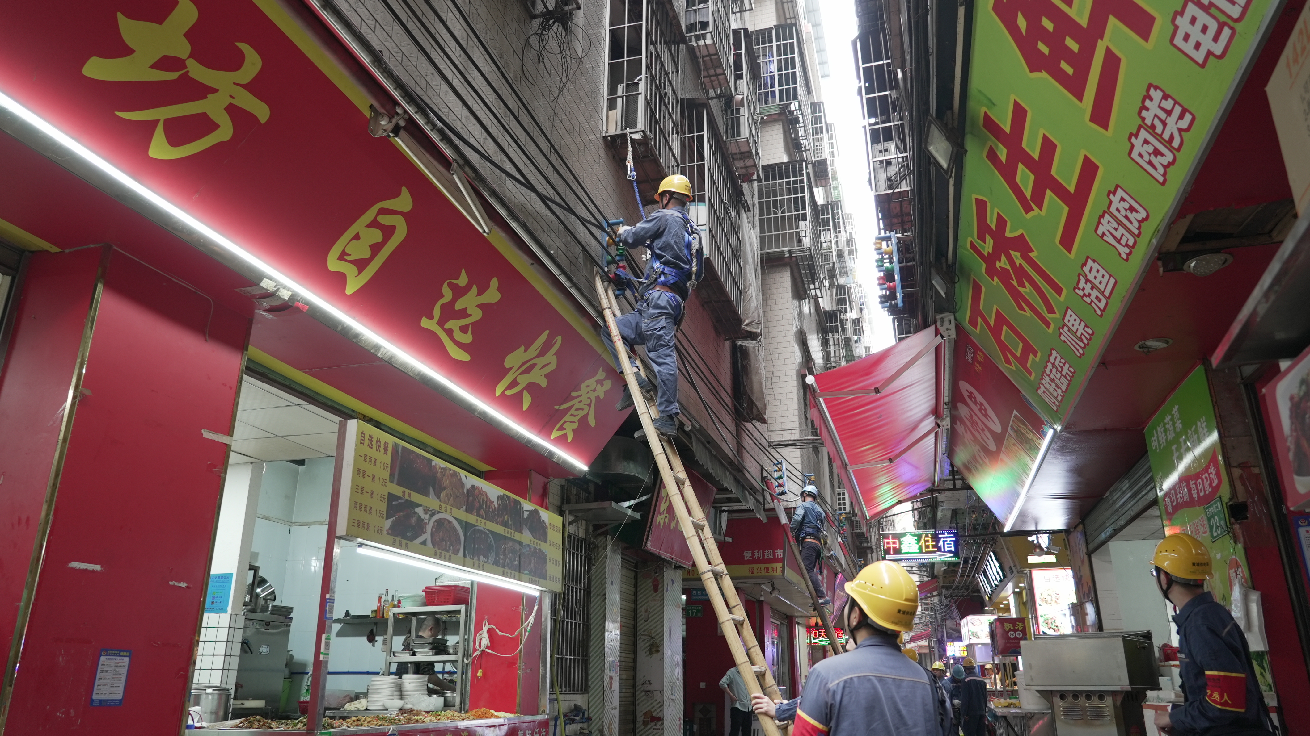 黄埔供电局提前谋划,精密部署,2天内制定了石桥村用电改造工作方案;通过线下协调物资到货,确保物资提前20天到货;与政府职能部门、街道、运营商等多方合力召开协调会,12天内协调人、机、物到位。黄埔供电局压实安全责任,紧凑有序安排施工,持续作战,克服连续雨天、城中村人流密集、特级保供电停工1周等困难,将90天完成的改造压缩至35天。