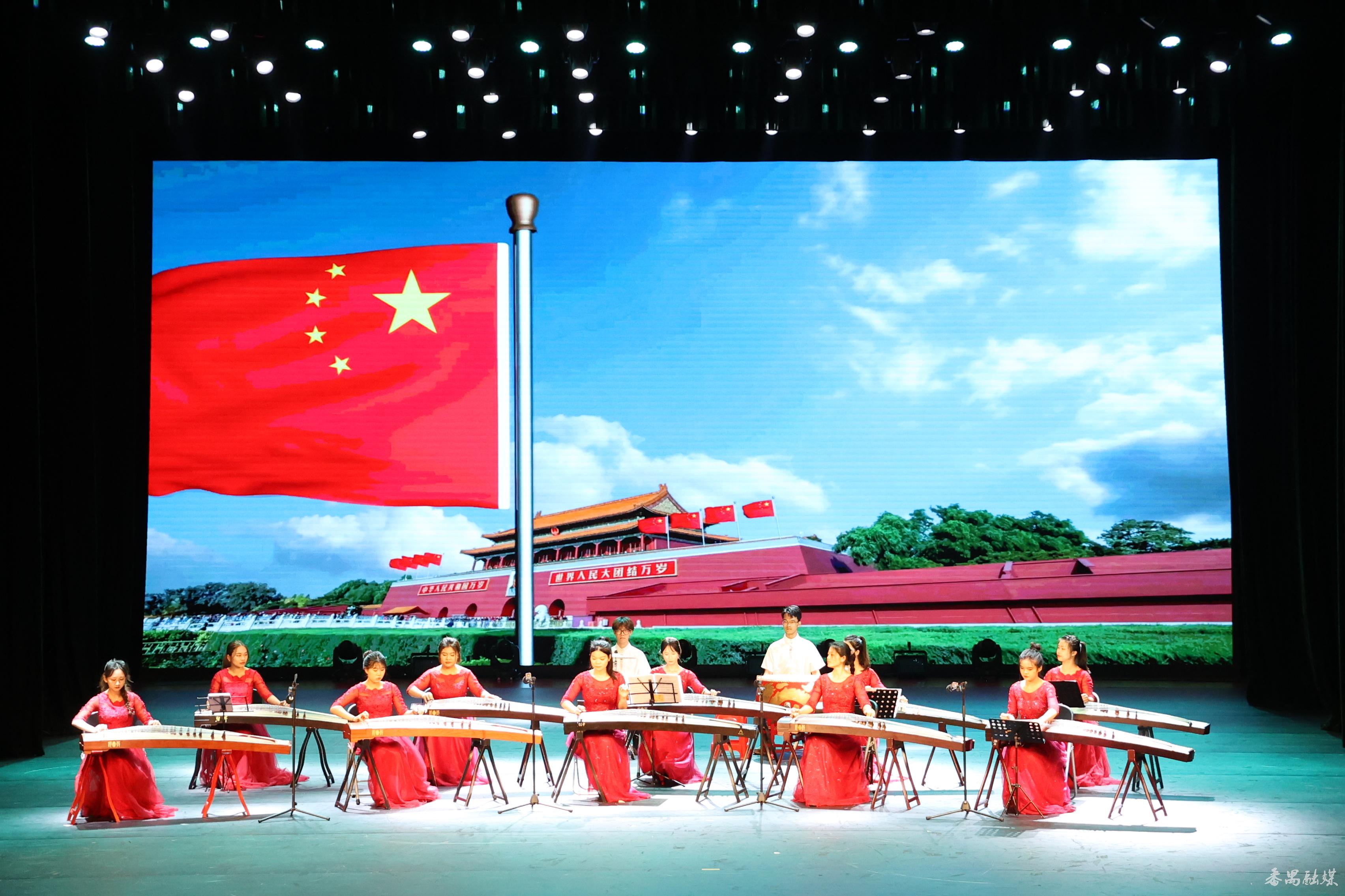 晚会在广东文艺职业学院筝乐团合奏的《我的祖国》中拉开帷幕,女子群舞《那些年》《碇步桥水清悠悠》展现出当代中国青年怀抱梦想又脚踏实地,敢想敢为又善作善成的形象;琵琶独奏《诉——读唐诗“琵琶行”有感》让观众感受到中华优秀传统文化的魅力;男子群舞《鹰之子》将艺术内涵的表演与舞者惊人的体能完美地结合在一起,表现出彝族男子像雄鹰一样翱翔天空的英雄气魄;男女群舞《巴塘弦子》《甘孜踢踏》通过对国家级非物质文化遗产代表性项目巴塘弦子、甘孜踢踏的全新诠释,展现藏区民间生活的风情万种;男声独唱《一个妈妈的女儿》、男子群舞《戈壁沙丘》、女声独唱《祥瑞山谷》将各民族手牵手和谐共生,编织祥和安宁的生活展现得淋漓尽致;男声独唱《嘉陵江上》、主题朗诵《领航·起航·远航——献礼党的二十大》、男女声二重唱《和祖国在一起》、合唱《跨越巅峰》《不忘初心》等作品热情讴歌了在中国共产党领导下祖国取得的伟大成就,师生们的精彩演绎,不时引发观众雷鸣般的掌声。
