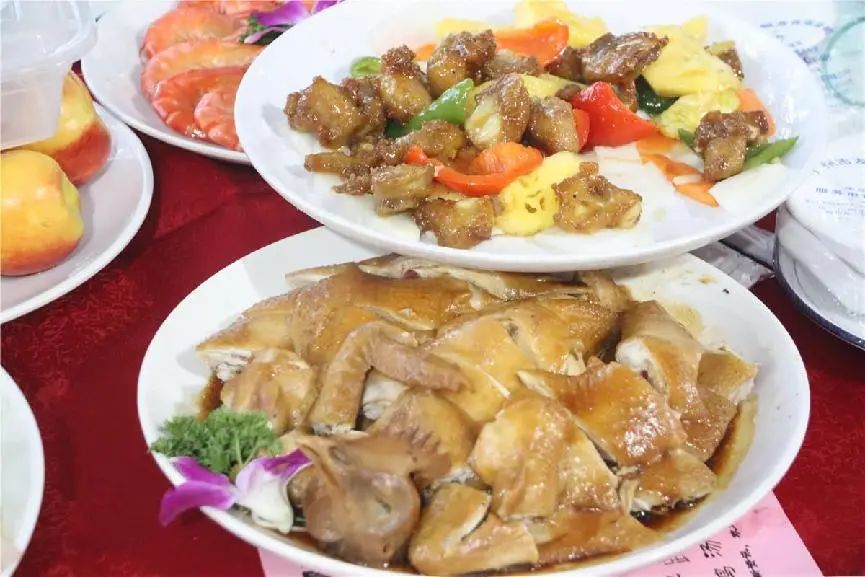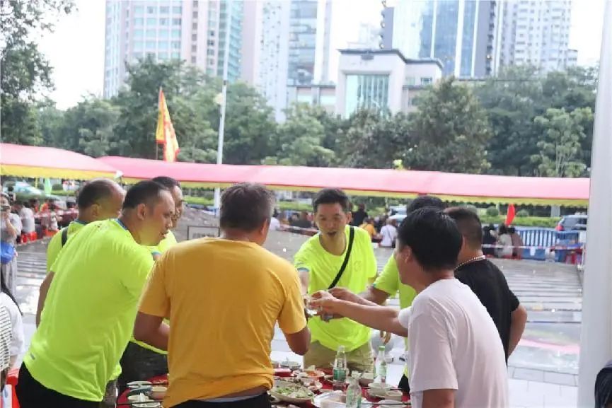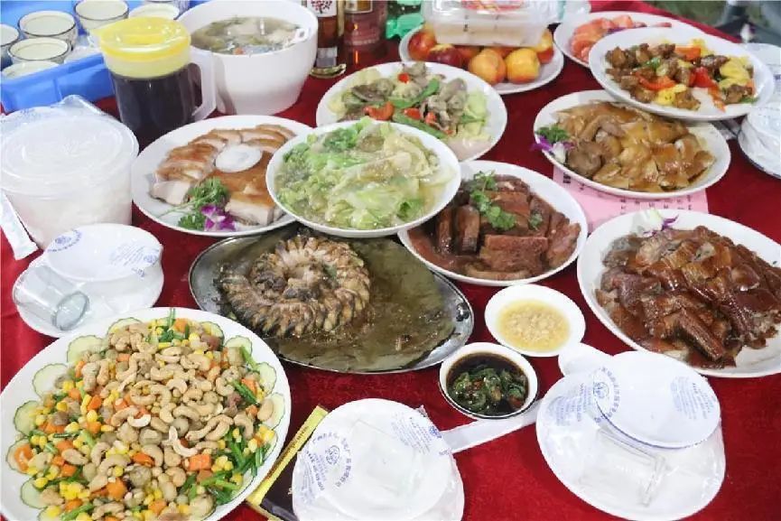 作为包含寓意的龙舟饭,宴席上的13道菜式各有讲究,蕴含着鸿运、美满等期盼,代表着村民们对生活的追求和向往。烧肉、“龙船丁”、香芋扣肉等,寓意着人丁兴旺、家肥屋润、身体健康。各种美味菜肴琳琅满目,在座的宾客们大快朵颐,在一声声饱含深情的祝福声中,村民们吃着、喝着、笑着,度过了一个难忘而富有意义的夜晚。