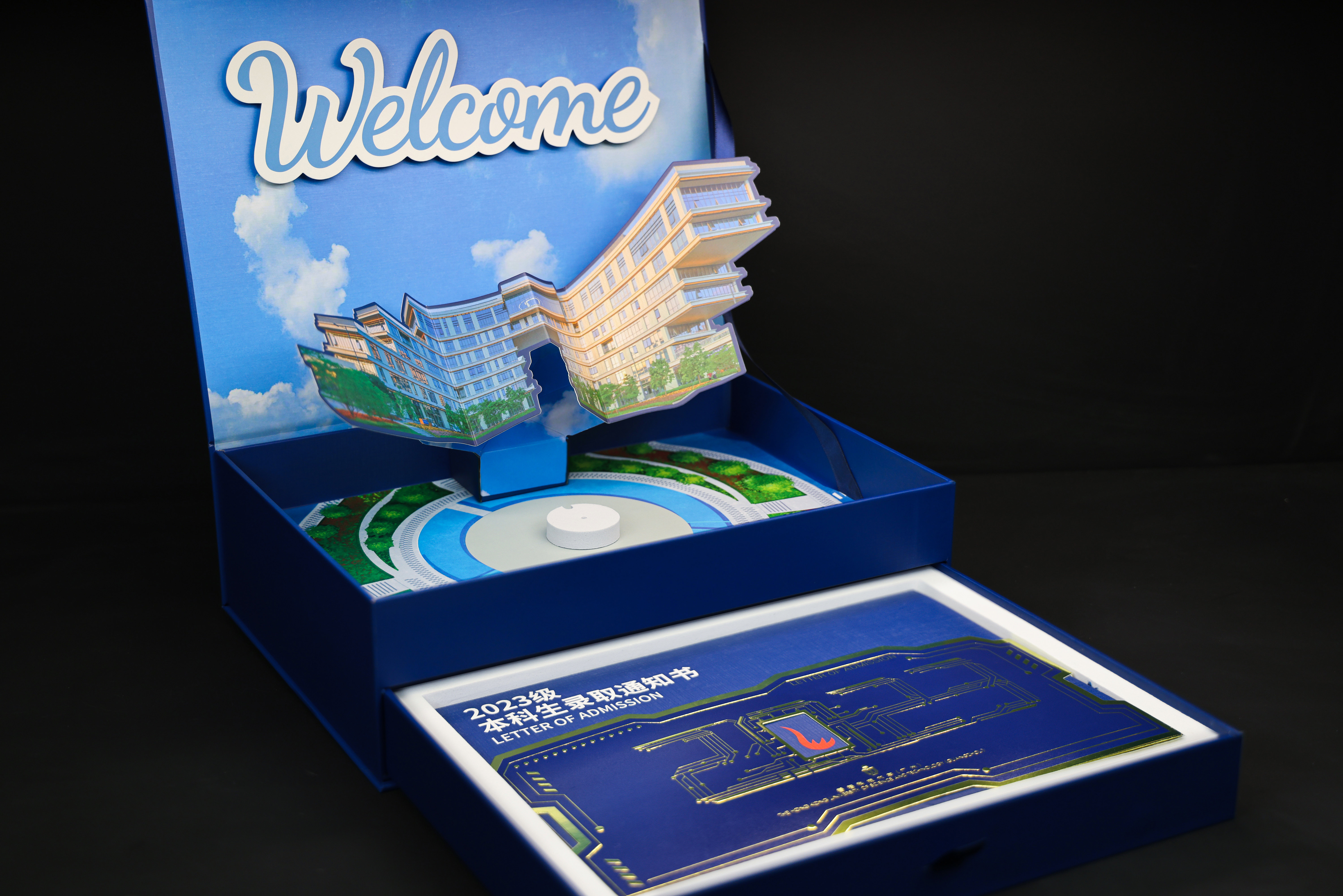据了解,本次录取通知书礼盒的设计源自师生共创。公共事务处(PAD)负责礼盒整体设计,由林湉婧担任总设计师,礼盒的优化创意得到了校园优化服务委员会文创开发小组的全力支持,礼盒内“隐藏彩蛋”的设计、开发及优化则由计算媒体与艺术学域(CMA)讲座教授许彬(Pan Hui)、王宇阳博士团队完成,资讯科技处提供技术支持。