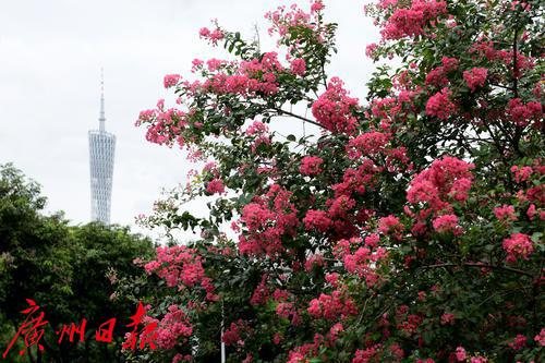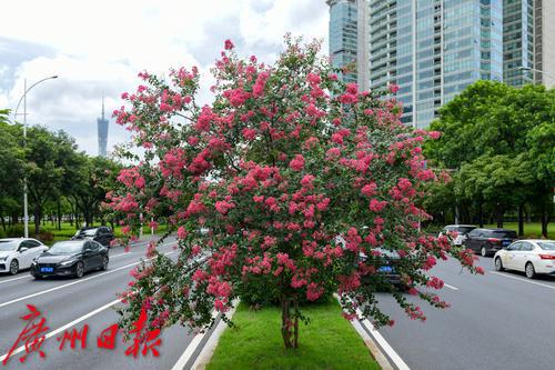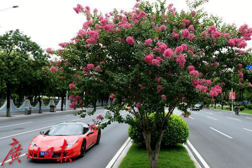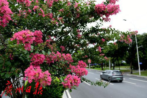 花期在6-9月的细叶紫薇进入盛花期了!近日,广州多个地方的细叶紫薇纷纷开花,紫红色的花朵缀在细软的枝头上,已然成为广州街头的一个个靓丽风景线。广州临江大道中间绿化带上种满了低矮的细叶紫薇,如今花开正盛,车辆驶过,一排排开满紫红色花朵的细叶紫薇随风摇摆,甚是好看。
