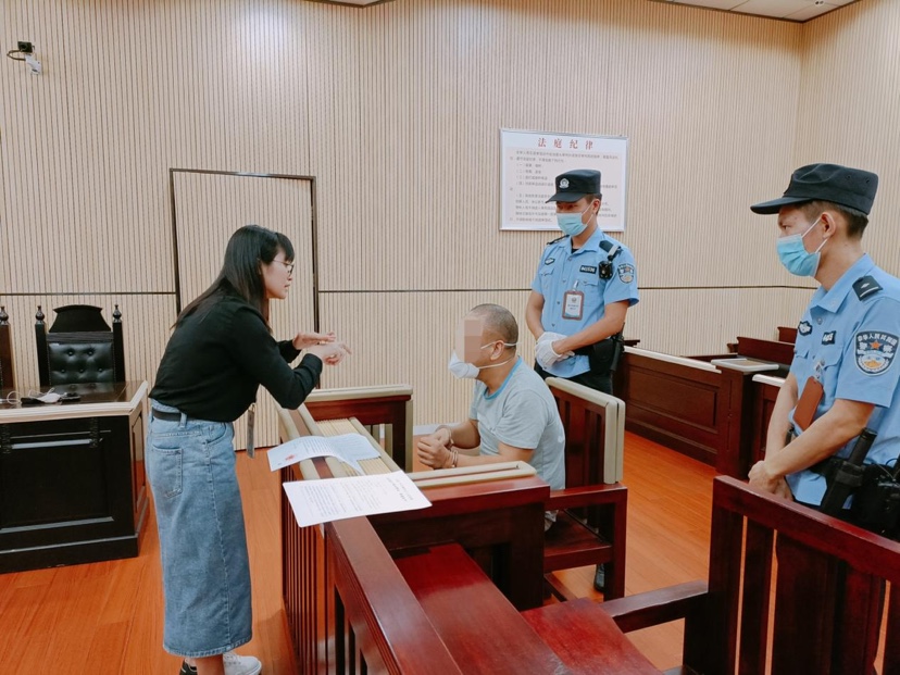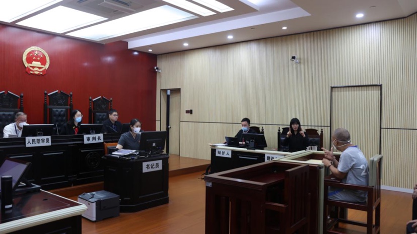 开庭当天,从庭前准备到正式开庭,再到宣判后的普法教育,手语翻译人员全程从旁协助,对法官讯问、公诉机关指控、辩护人意见等,通过手势、口型相结合的方式同步翻译传达给被告人。