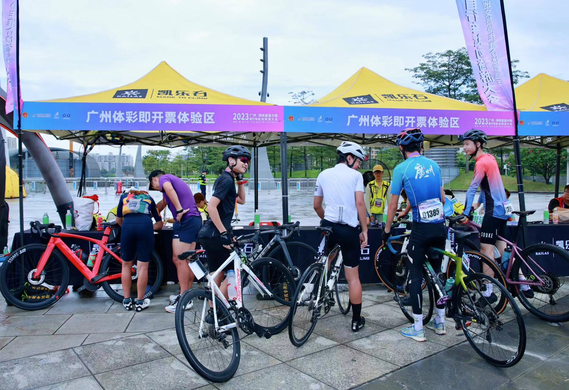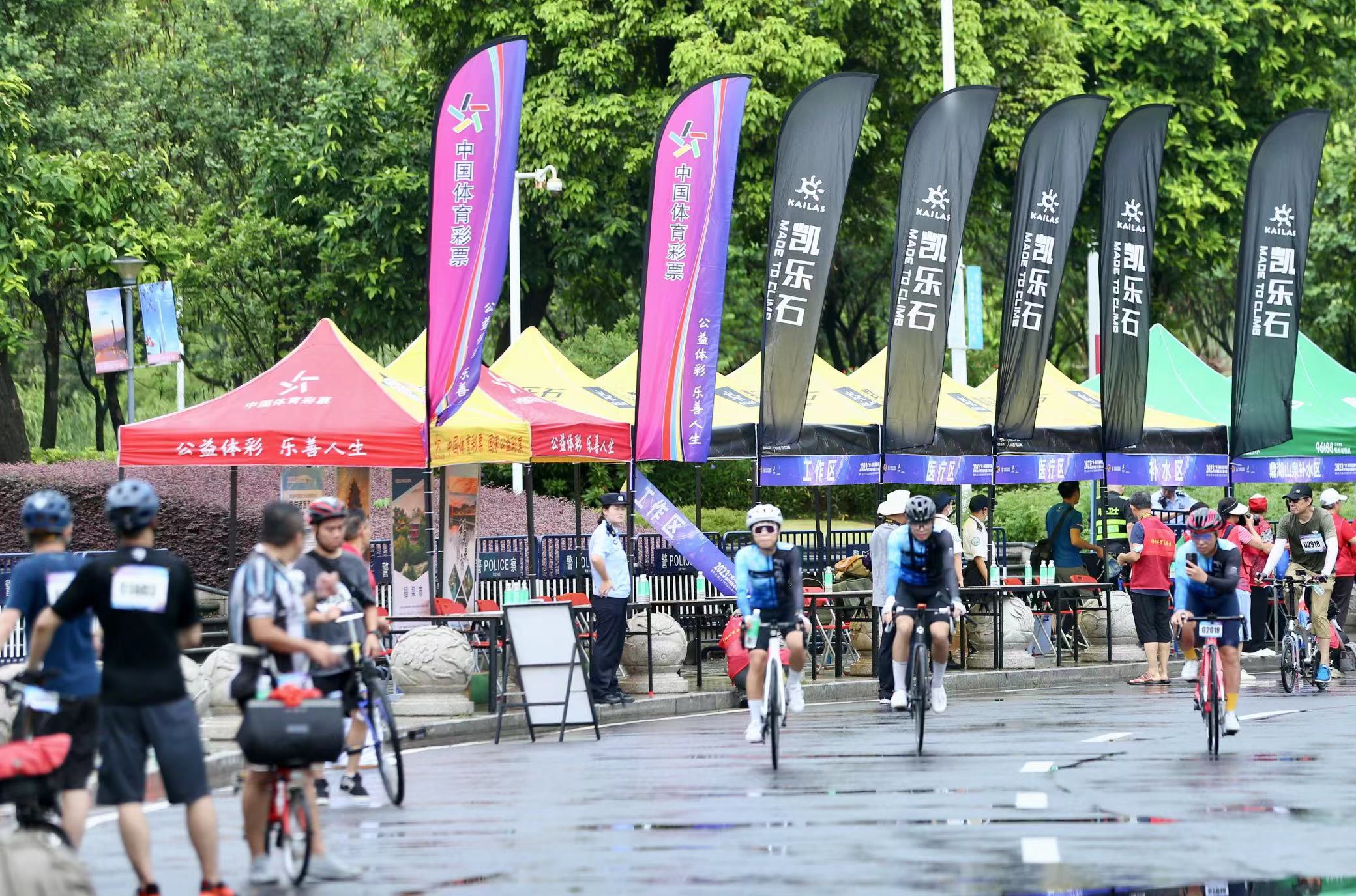 作为支持单位,广州体彩除了在现场布置了道旗、横幅、帐篷外,还设立了“打卡点”——即开票销售点,迎来了一批又一批的骑友。他们通过公益宣传专区全面了解中国体育彩票,也能顺手买一张即开即兑的“顶呱刮”为公益事业助力。通过与自行车运动的“跨界联合”,广州体彩让更多年轻人感受到体育彩票“有益、有趣、有聊”的品牌价值。