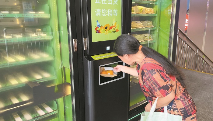 一名深圳市民从智能领取食物