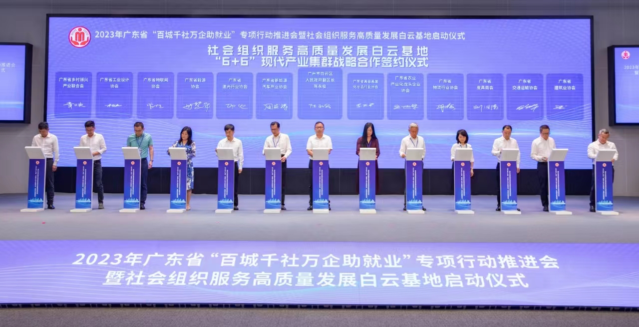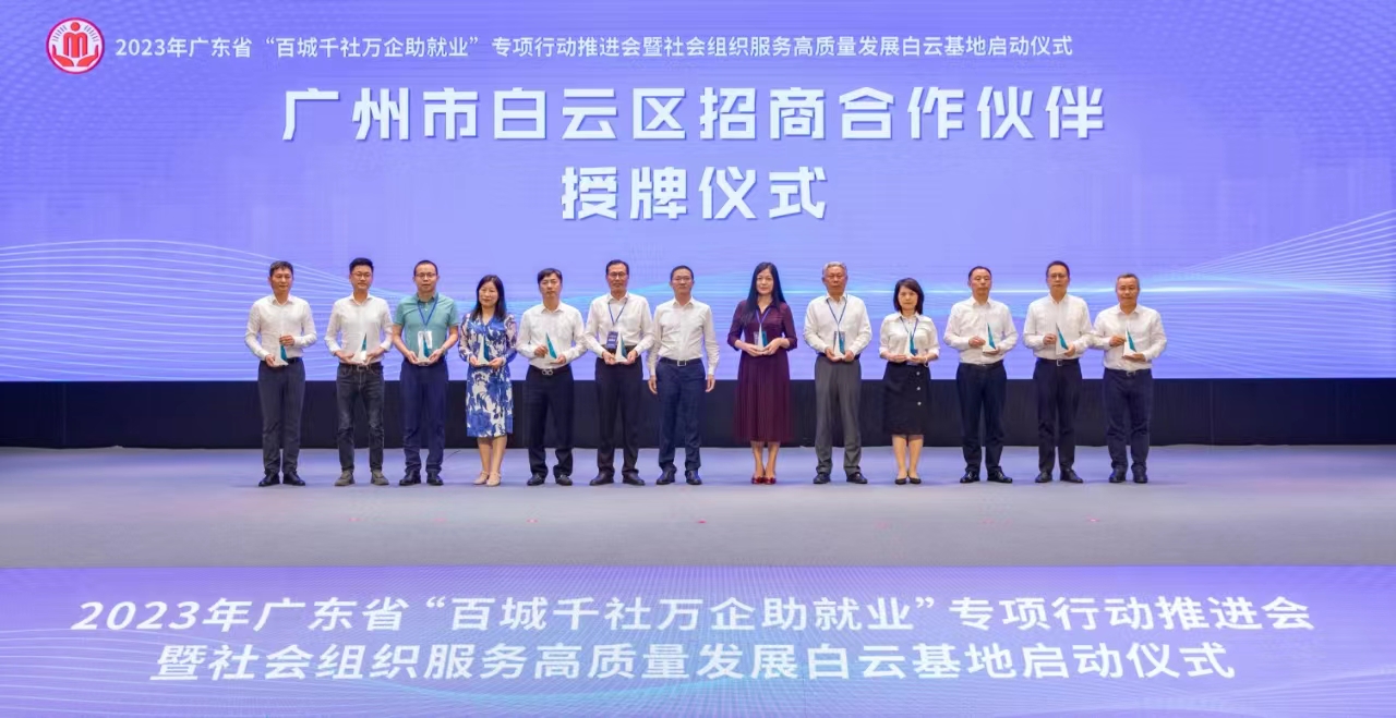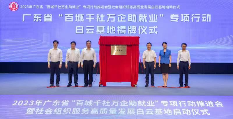 7月6日,2023年广东省“百城千社万企助就业”专项行动推进会在广州市白云区举行,广东首个“百城千社万企助就业”专项行动基地落户白云,同步揭牌成立社会组织服务高质量发展白云基地。