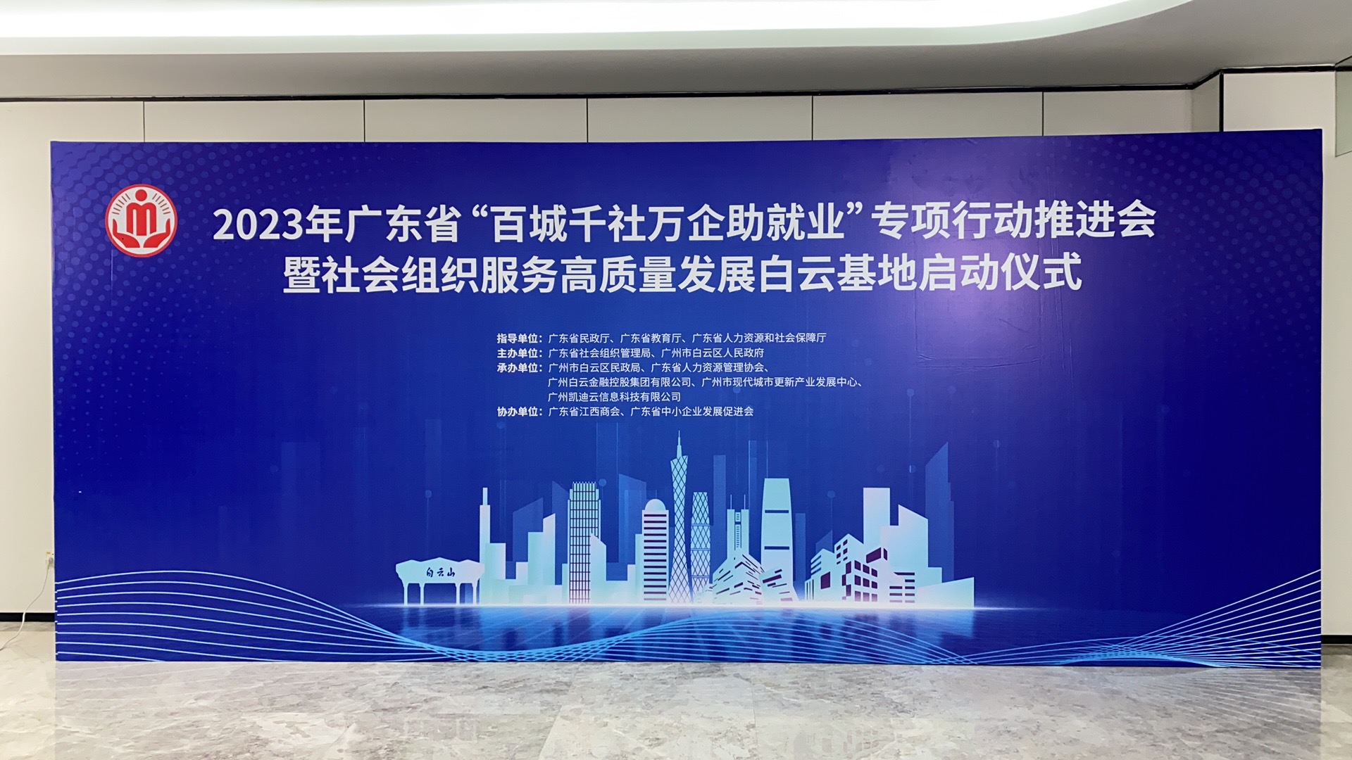 7月6日,由广东省民政厅、省教育厅、省人力资源和社会保障厅指导,广东省社会组织管理局、广州市白云区人民政府联合主办的2023年广东省“百城千社万企助就业”专项行动推进会暨社会组织服务高质量发展白云基地启动仪式在广州举办。