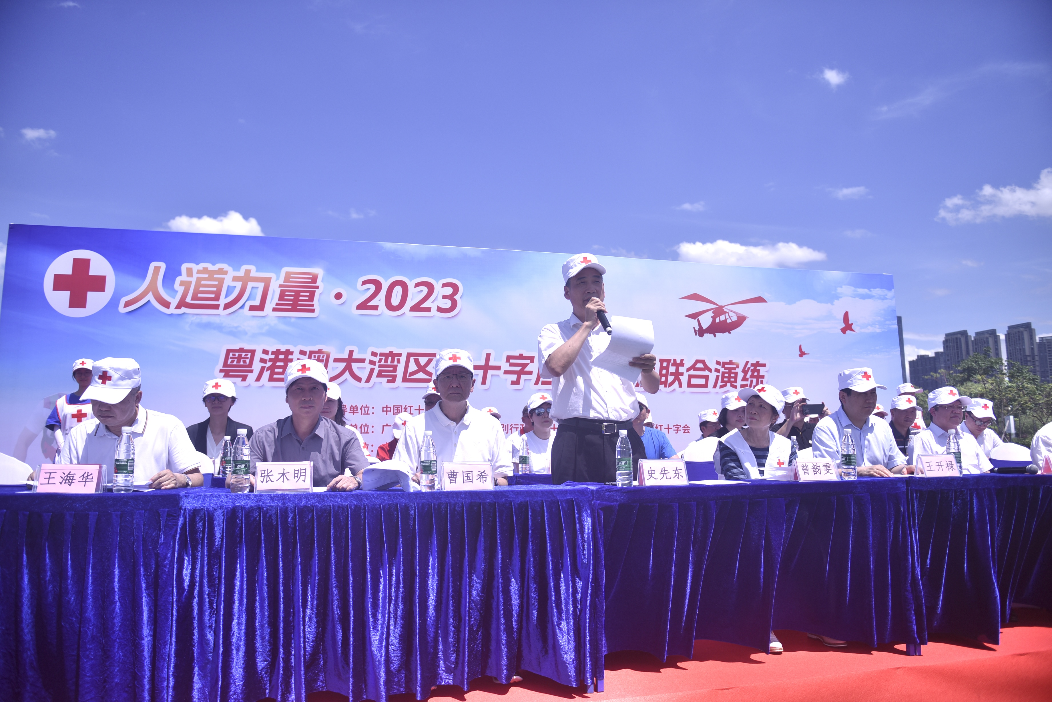 广东省红十字会党组书记、常务副会长史先东作演练前动员并宣布演练开始。