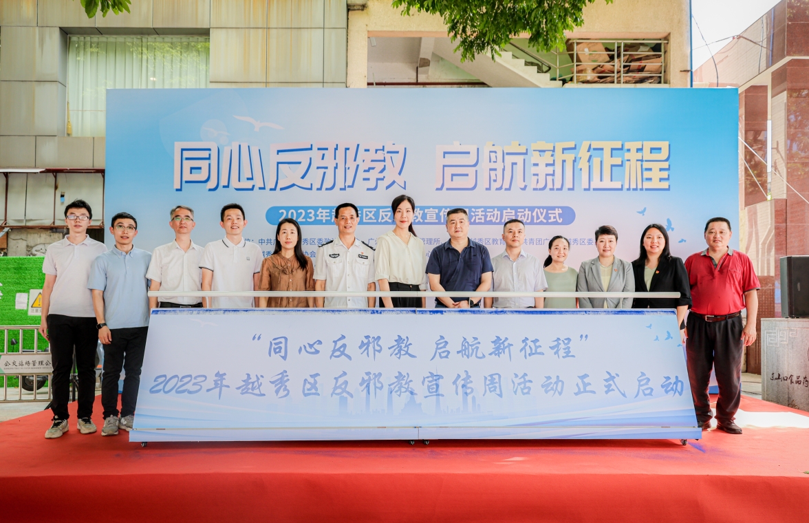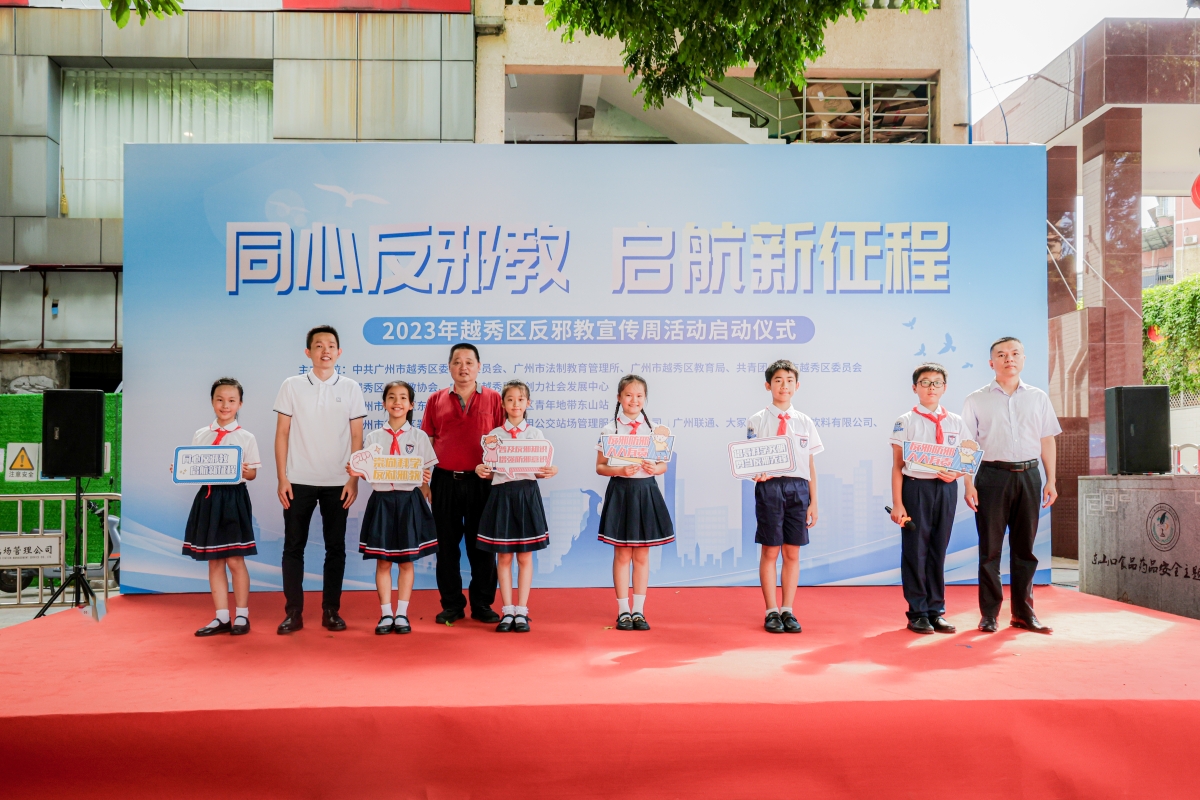 7月7日上午,由广州市越秀区委政法委员会、广州市法制教育管理所主办,越秀区青创力社会发展中心承办的“同心反邪教 启航新征程”2023年广州市越秀区反邪教宣传周活动在东山街正式启动。