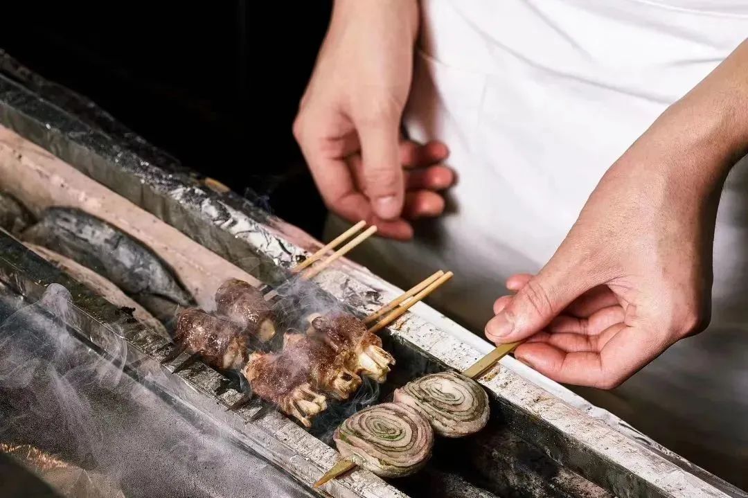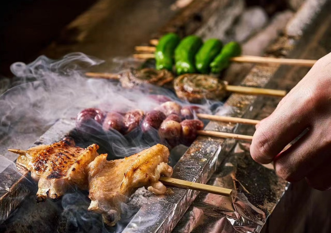 烧鸟就是将鸡肉切成一口就能吃下去的大小,插在签子上,烤制而成的料理。其中,厨师的手法和火候都很重要。将寻常料理中鸡冠、凤尾等不起眼的部位,经过厨师的料理,成为烧鸟中的珍稀菜品。瞬间的高温,能够让肉类以更快速度锁住水分,烤制出外焦里嫩的料理。