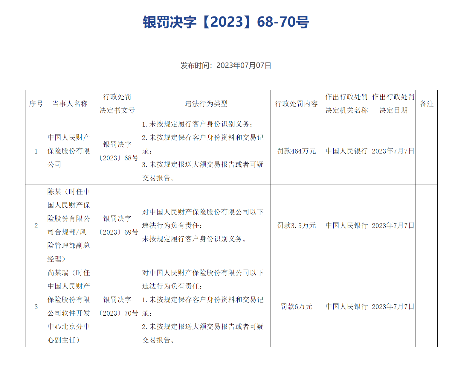 中国人民银行网站消息,平安银行、邮储银行和中国人民财产保险股份有限公司3家金融机构,以及多名相关管理人员受到央行处罚。3家机构被罚款合计近9000万元。