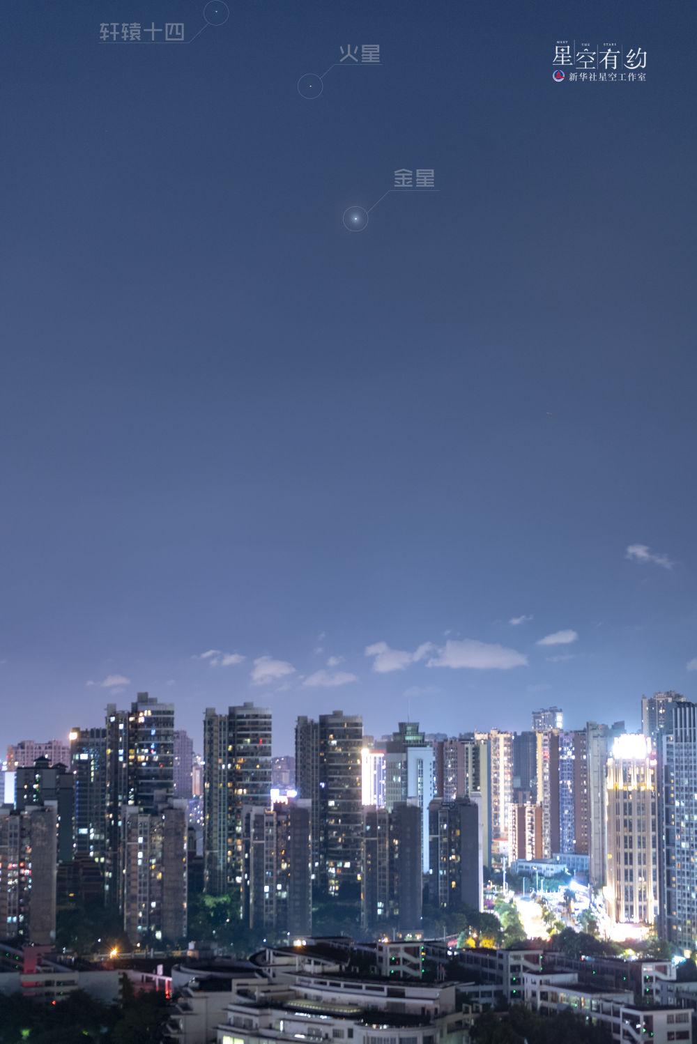 “当晚,虽然轩辕十四的亮度为1.35等,比微微泛红的火星还要明亮,但在光污染较为严重的城市,要想凭借肉眼看到它们并非易事,感兴趣且有条件的公众可借助小型天文望远镜观测;要想用肉眼看到‘高清版’,建议选择光污染较低的地方,如郊区、农村等地,更利于观测和拍照。”赖迪辉提醒说。