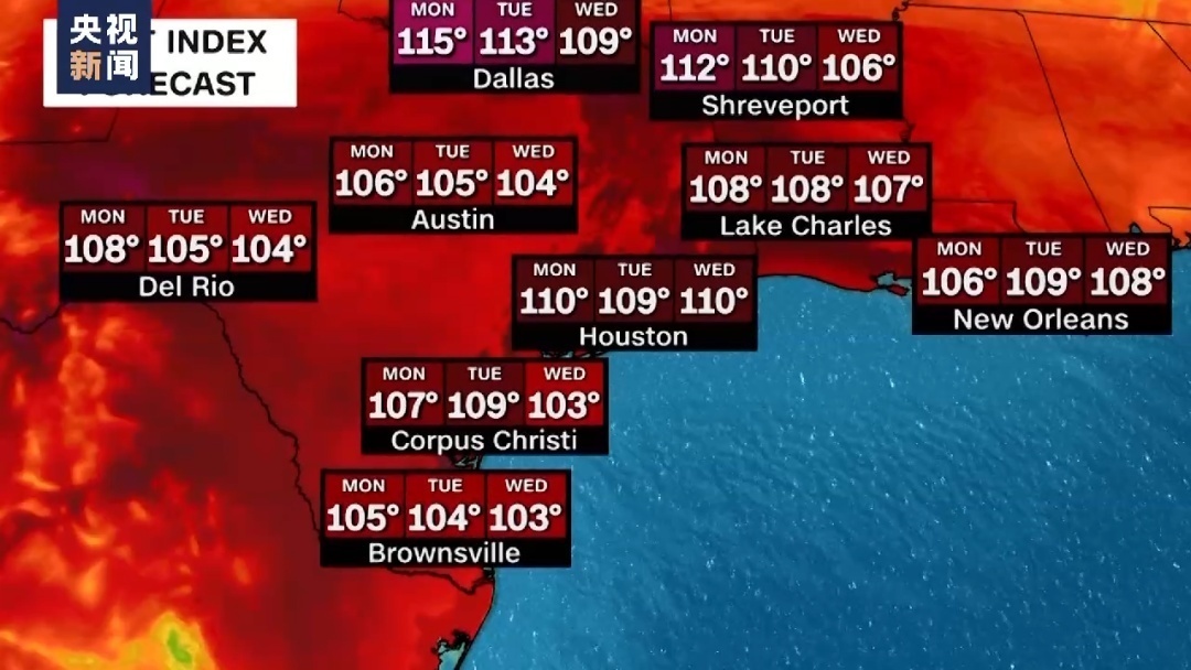 美国全国公共广播电台6月25日报道称,得克萨斯州多地气温在过去一周达到46℃,高温导致大量居民供电中断。美国国家气象局天气预报中心最新消息显示,席卷美国南部平原和密西西比河下游河谷的危险高温可能至少持续至7月初,并有可能打破整个地区的高温纪录。