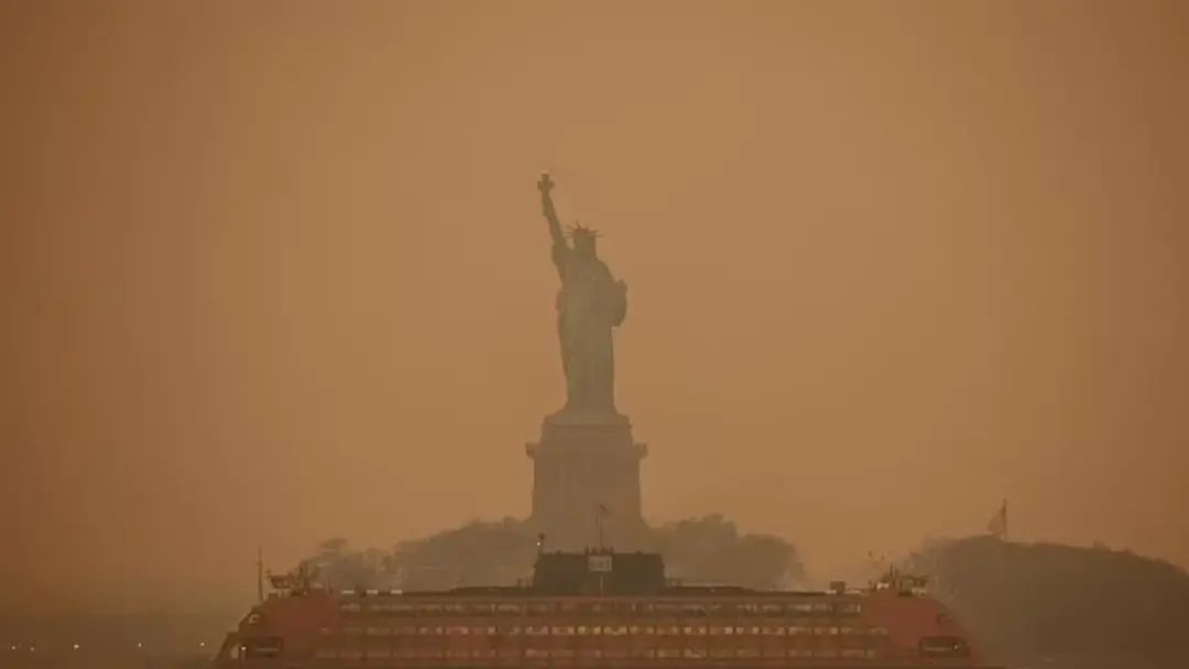 加拿大森林大火持续,肆虐山火产生的大量烟尘影响加拿大多地,并在低压影响下向东南方向,进入美国东北部,导致美国首都华盛顿和最大城市纽约等地被浓烟笼罩。由于空气污染严重、能见度明显降低,人们的生活受到极大影响。
