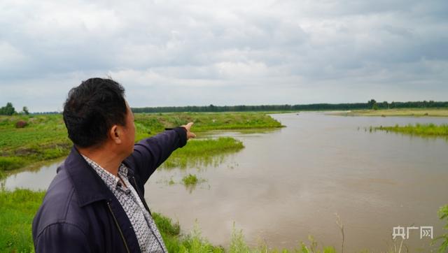 大雨刚过,洮儿河水面快漫上河床。河岸上,十几位村民在钓鱼,河对岸还有人拉网捕鱼。