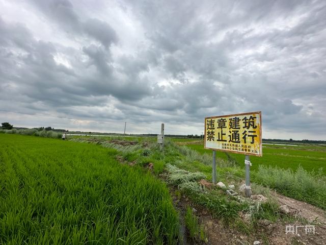 黄德义说,立这块牌子时,眼前的稻田还是河道(央广网记者 郭东隅 摄)