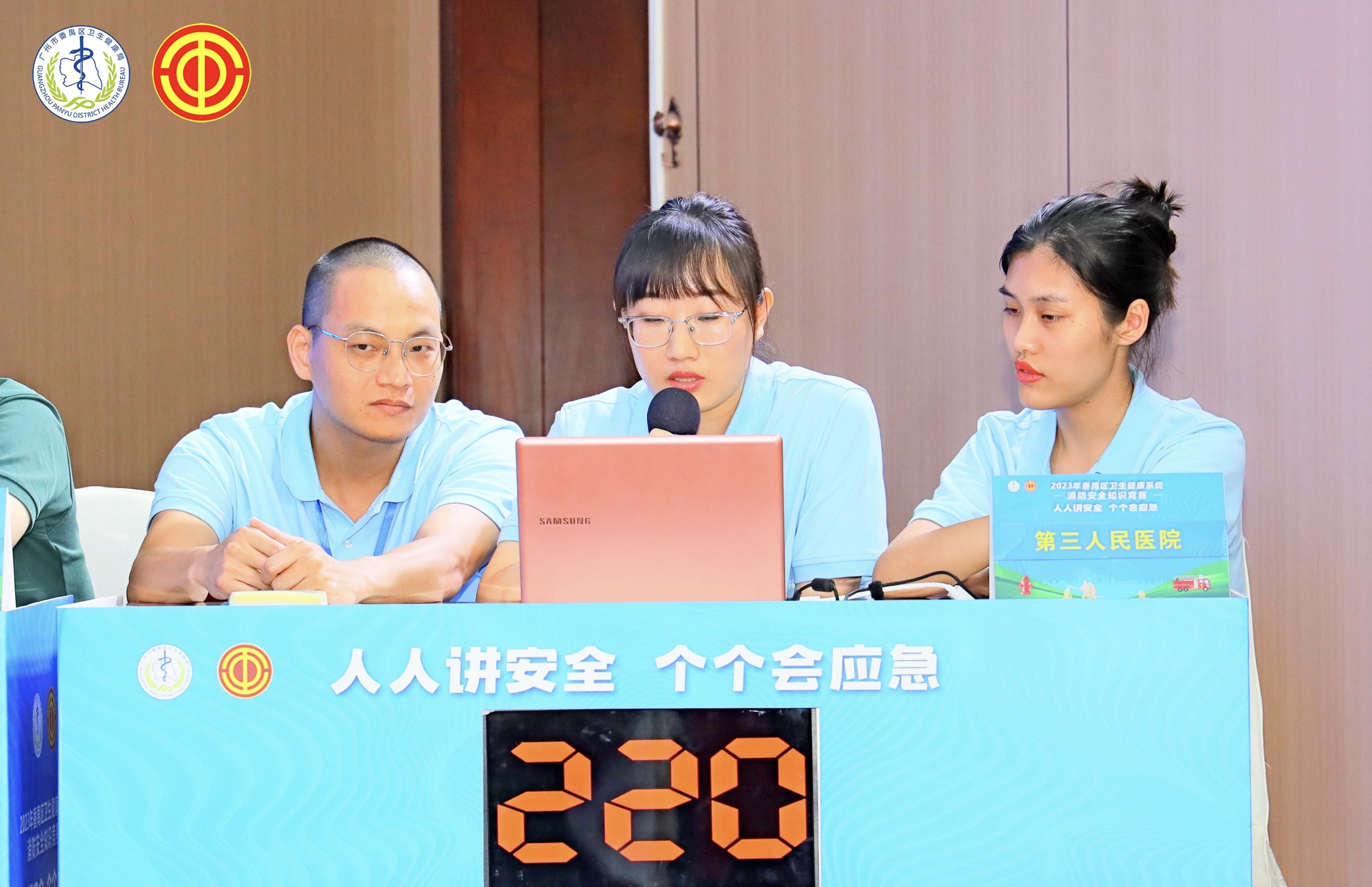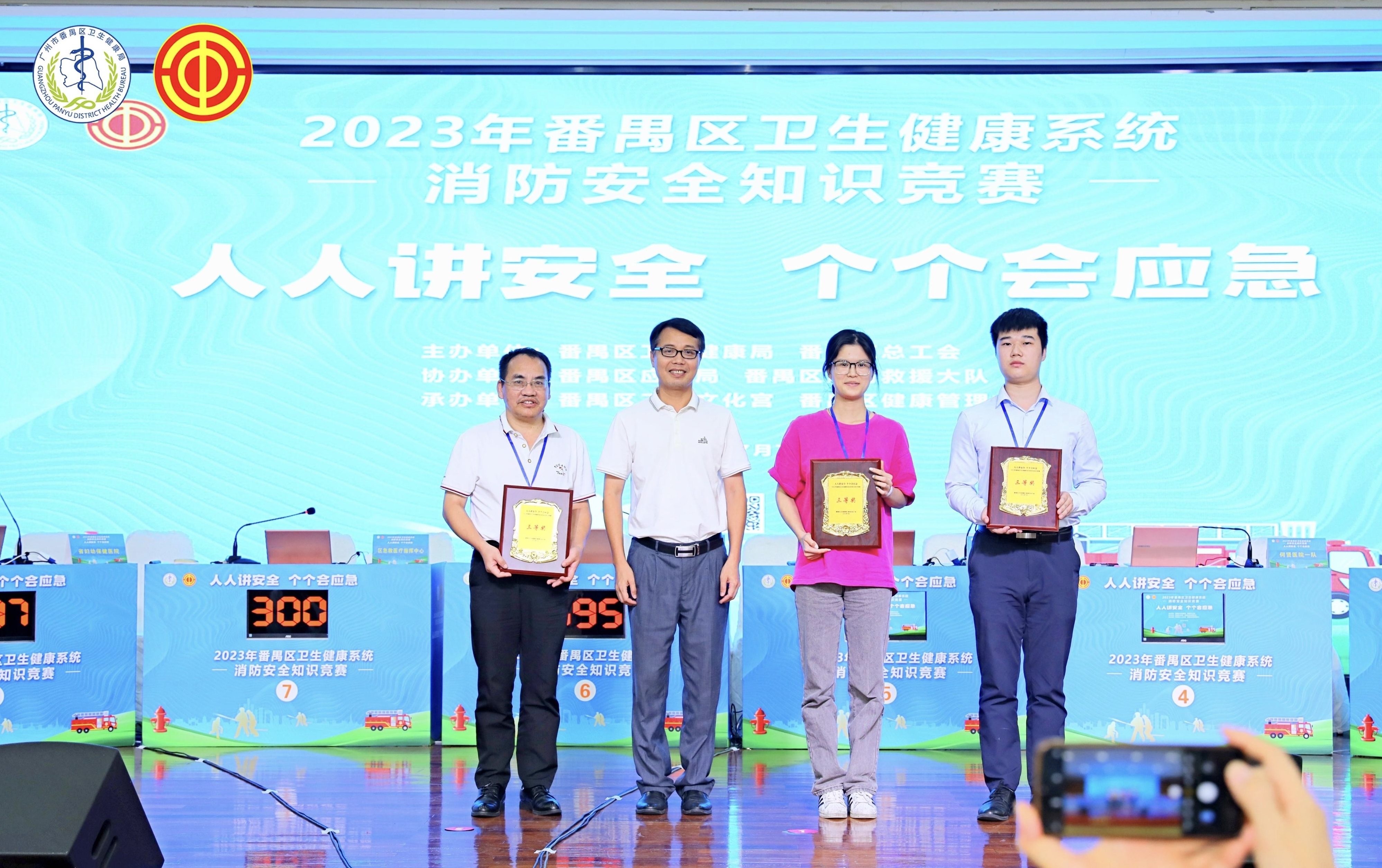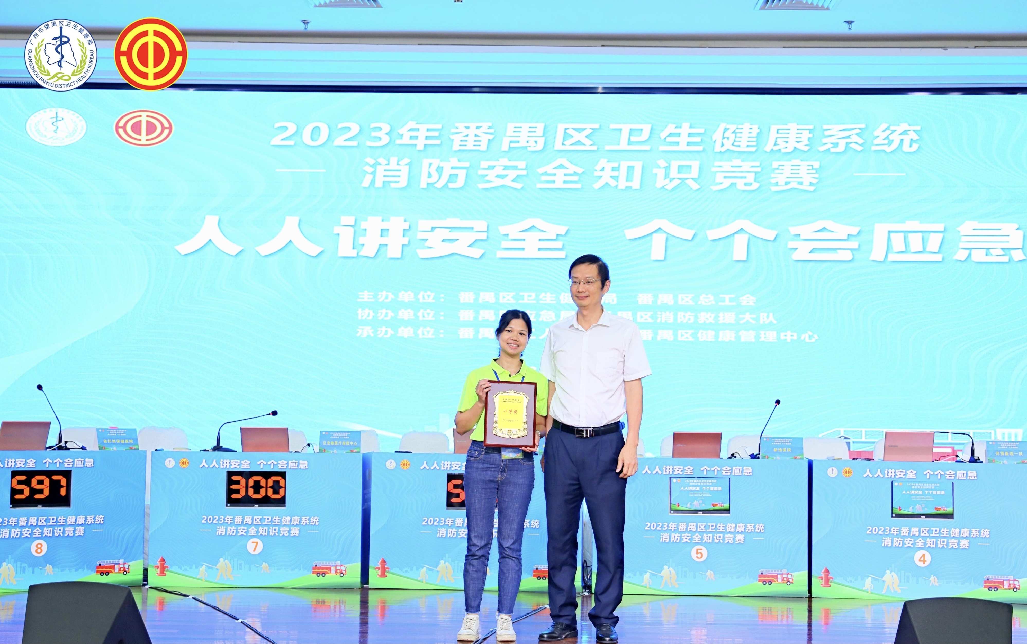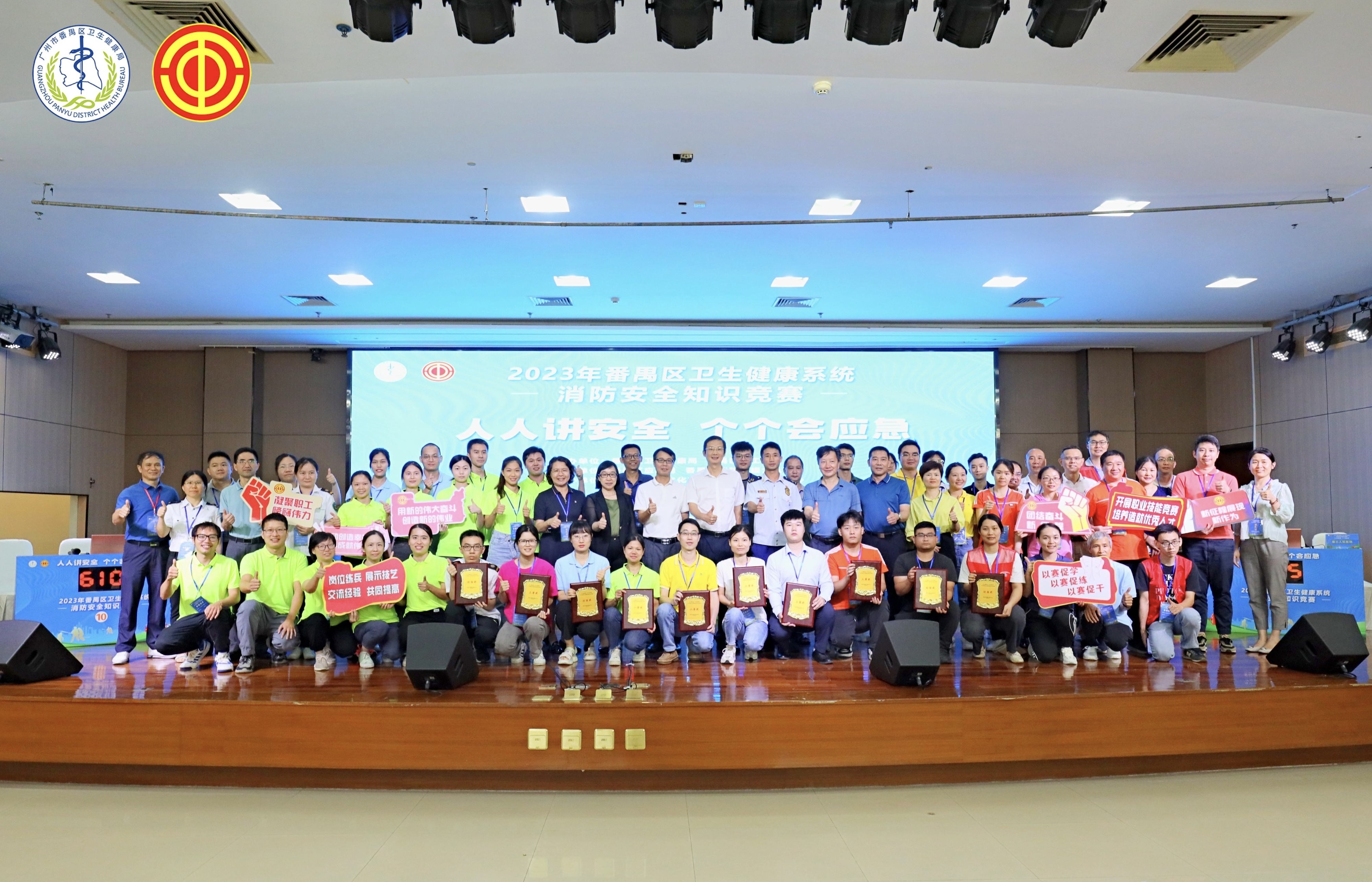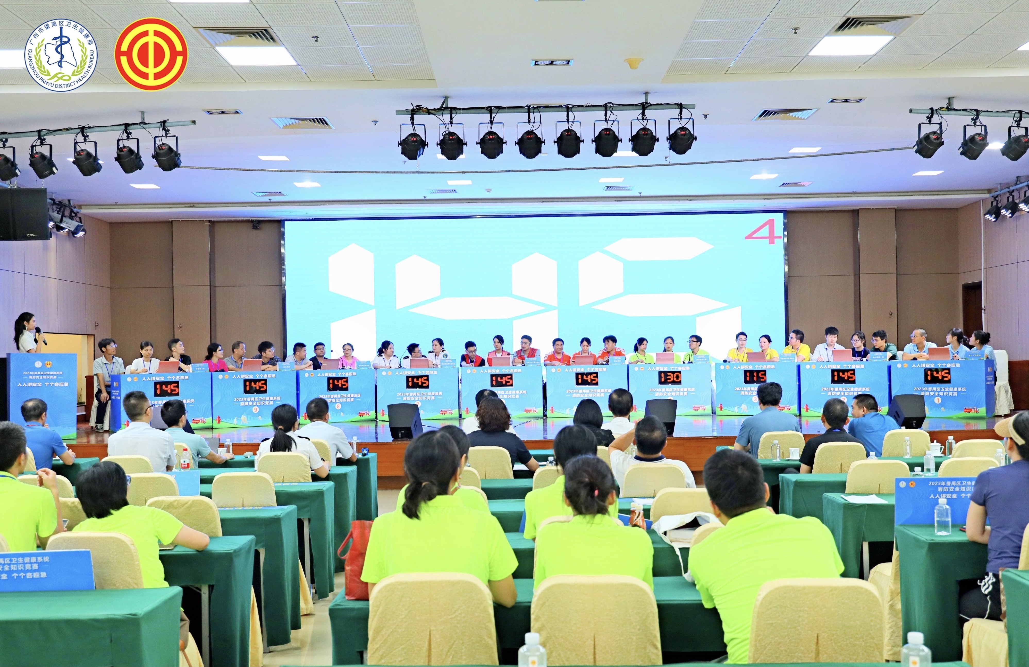 7月7日,广州市番禺区卫生健康局、区总工会、区工人文化宫联合在区健康管理中心举行“人人讲安全、个个会应急”为主题的消防安全知识竞赛活动,来自区卫生健康局系统各单位共49支队伍的147名选手参加了比赛。区卫生健康局、区总工会、区应急管理局、区消防救援大队有关领导到场观摩了比赛。