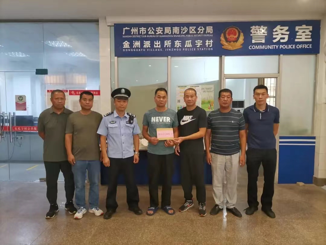 为表彰东瓜宇村民、广州市开民物业有限公司工作人员谭沛华的见义勇为行为,南沙街道东瓜宇村两委肯定其英勇表现,向谭沛华发放2000元慰问奖金。