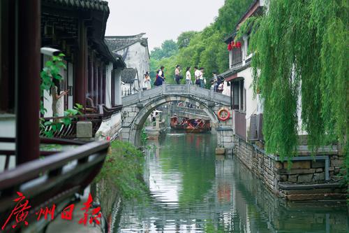 平江路“小桥流水、粉墙黛瓦” 的独特风貌吸引着天南地北的人们,来此“打卡”体验江南之美。