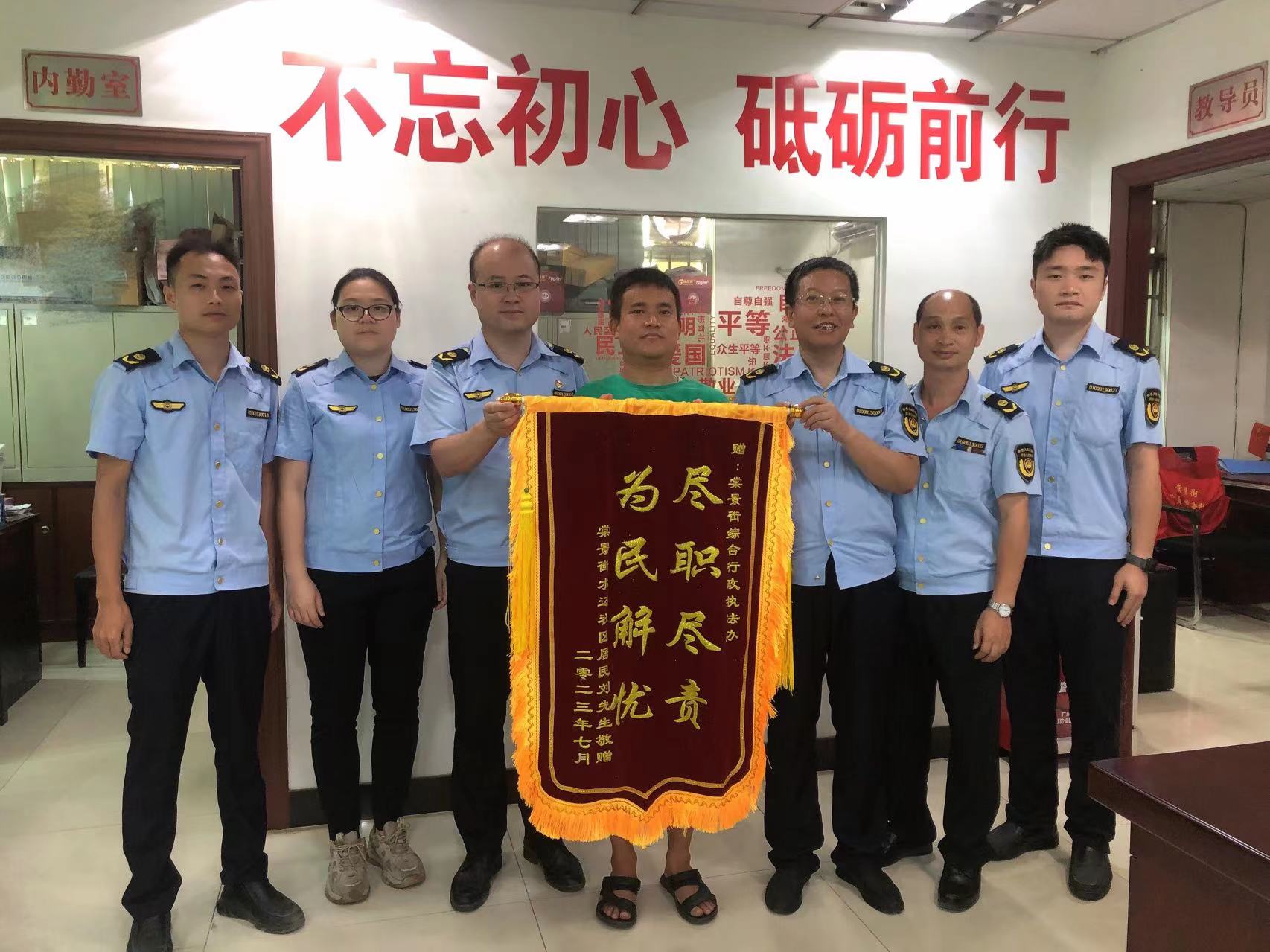 “咱们的执法队员太有耐心,太暖了,完全打破了以往我对城管的偏见,为你们的文明执法点赞。”7月10日,广州市白云区棠景街市民刘先生将一面印有“尽职尽责、为民解忧 ”字样的锦旗,送到了棠景街综合行政执法办公室,表达对综合执法部门温情执法,设身处地为老百姓解决实际问题的真诚谢意。