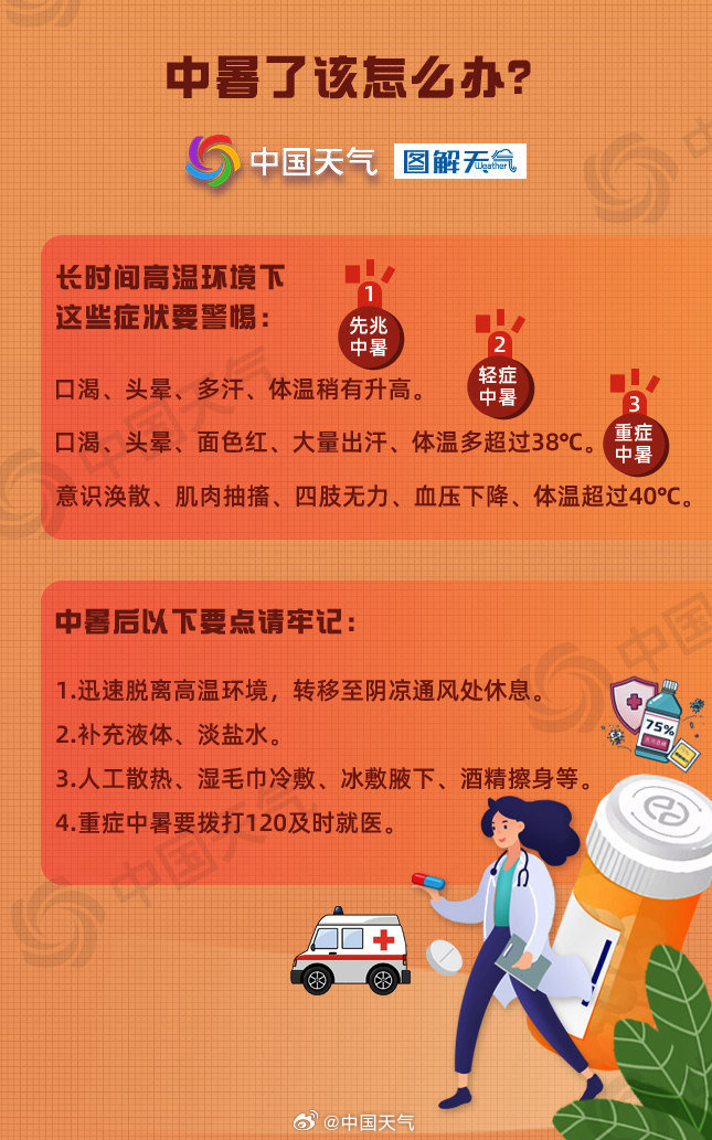 “江南、华南等地受副热带高压控制,头伏期间气温较高、湿度较大,以闷热天气为主。”中国天气网气象分析师王伟跃表示,头伏期间,江南、江淮、华南等地多35℃以上高温天气,高温日数一般有7~9天,上述大部地区都较易出现中暑天气,其中长江中下游、江南大部以及华南中部和东部等地易发生中暑。湖北东部、湖南北部、江西北部、浙江中部和北部、福建西北部、广西西部、海南岛中部等地的部分地区最高气温普遍超过34℃,部分地区有37℃以上的高温天气出现,同时最低气温也多在26℃之上,加上相对湿度较大,极易发生中暑。