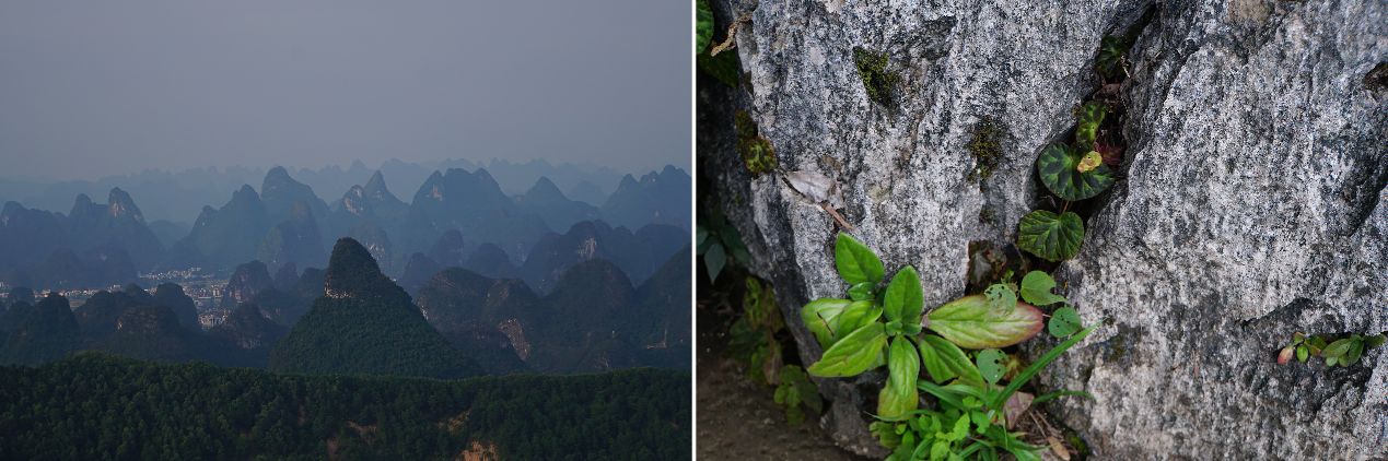 广西桂林喀斯特地貌和喀斯特地貌生境中生长的苦苣苔科和秋海棠科植物