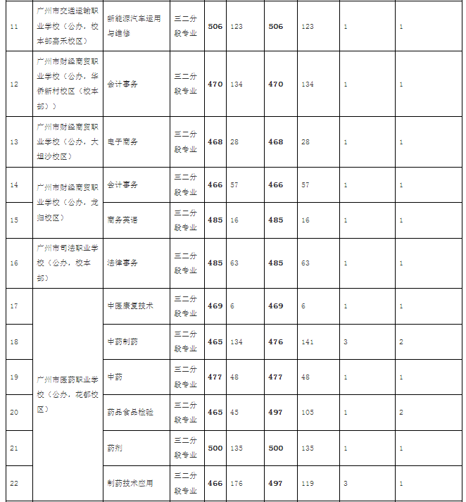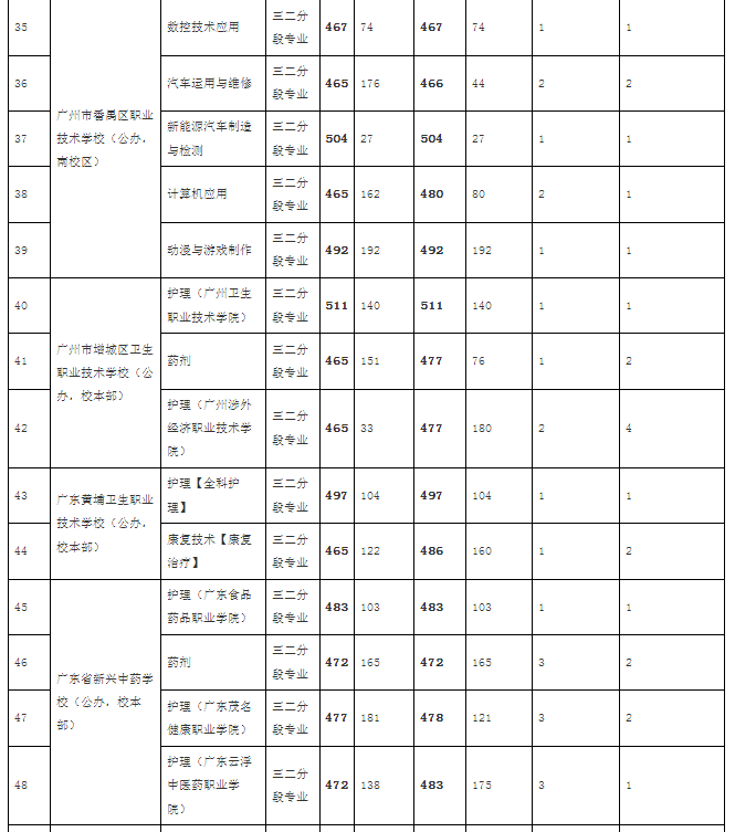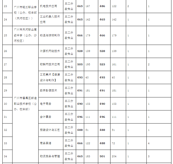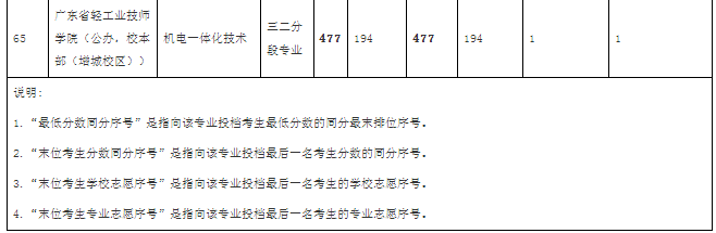 备注:未完成招生计划的中职三二分段专业及省级以上重点特色专业投档最低分数为465分(即中职三二分段专业及省级以上重点特色专业录取最低控制分数线)。