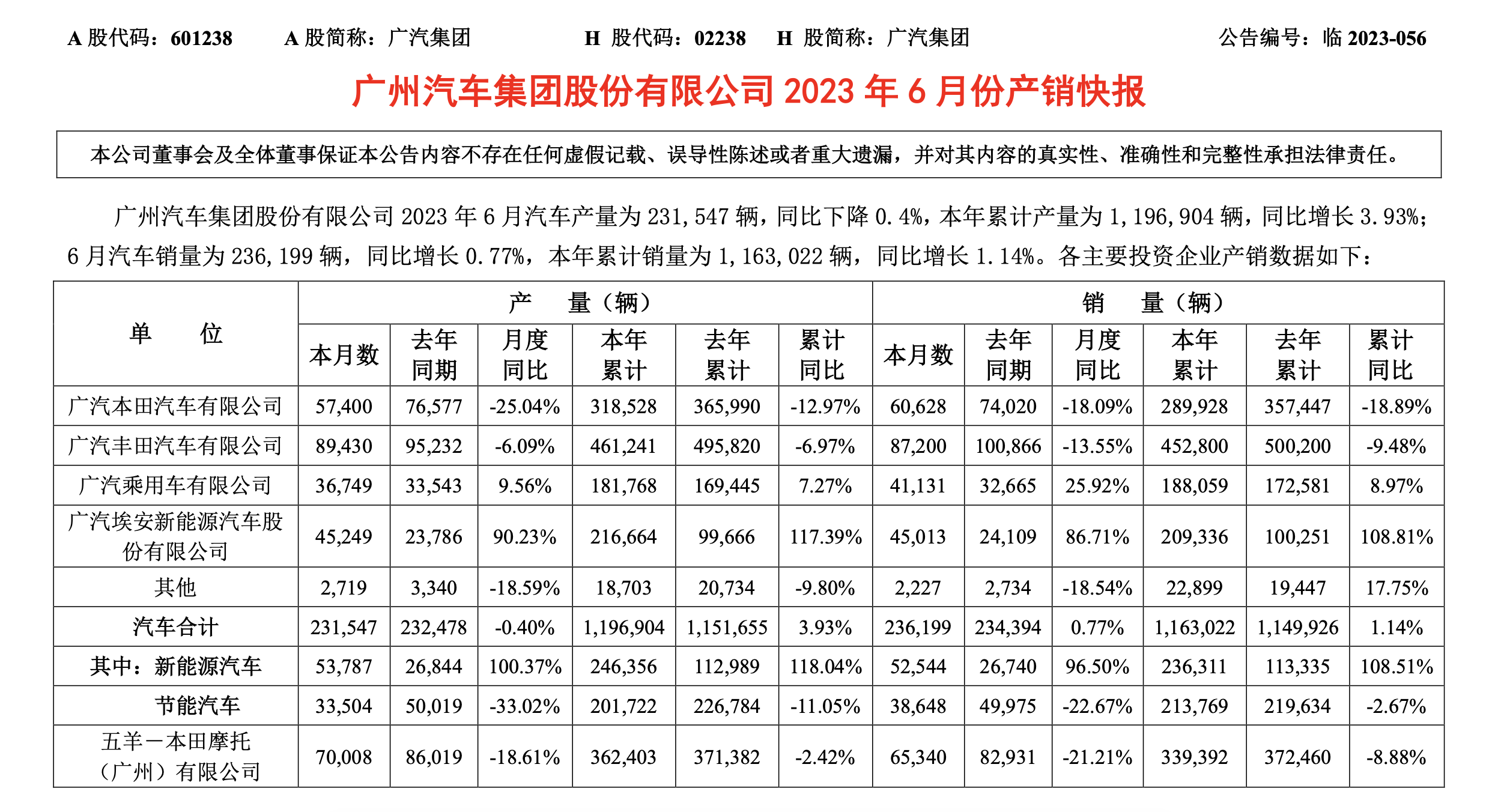 (在广汽集团最新披露的今年6月产销数据中,没有广汽三菱)。