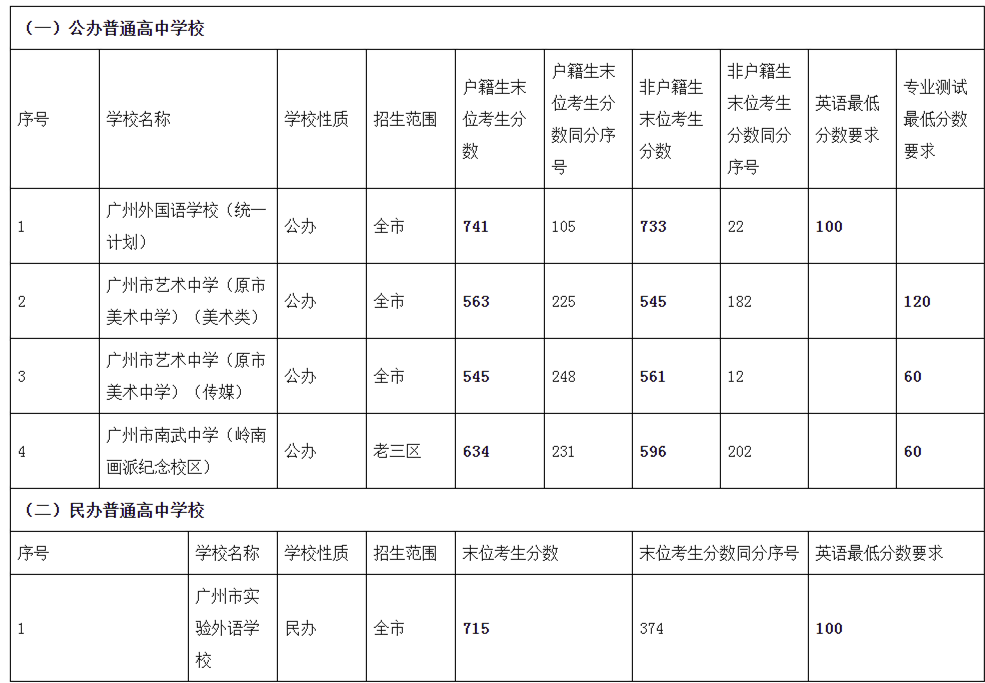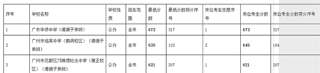 7月12日,2023年广州市高中阶段学校招生第一批次录取工作已启动,录取分数公布如下: