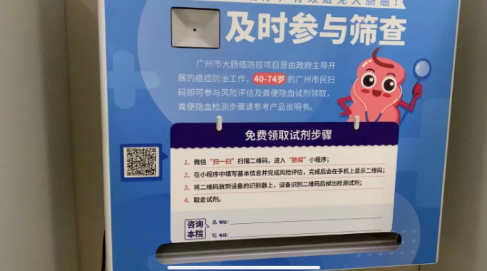 此前,适龄居民可通过以下途径参与广州市大肠癌防控项目:前往居住地的社区卫生服务中心参与“广州市大肠癌防控项目”,完成风险评估和粪便隐血检测;或是通过微信小程序“肠探”完成风险评估,到居住地的社区卫生服务中心领取粪便隐血检测试剂。