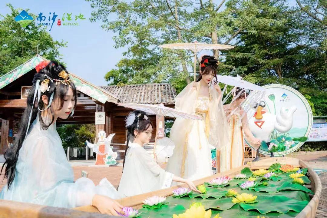 也能到南沙湿地参加荷花文化节,与NPC即兴演一场“荷仙问莲”,在荷花池旁品一桌荷花宴;