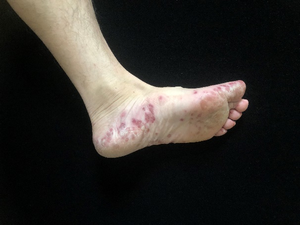 日前,一对情侣一瘸一拐互相搀扶着来到广州医科大学附属第一医院皮肤科门诊求医。接诊的皮肤科主任医师黄卫宁仔细检查发现他们的手、脚上有成片水疱。详细问诊后,黄卫宁了解到,他们不光是手脚长满水疱又痒又痛,还伴有低烧。综合检查结合和症状,他们被确诊患上手足口病。