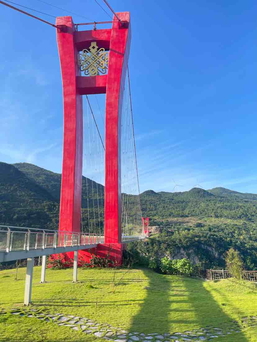 一座玻璃桥,人走在高空中,体验到高空直接面对垂直地面数十米的新鲜感受,确实新奇。遗憾的是,恐高的人不能玩。但是对于多数年轻人,这是个很好玩的地方,全长520米的玻璃桥,跨在湟川三峡之上,白云在玻璃上映衬,下面有船江上川行,犹如仙人在云中漫步,新鲜又刺激。
