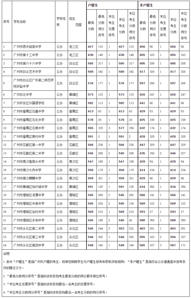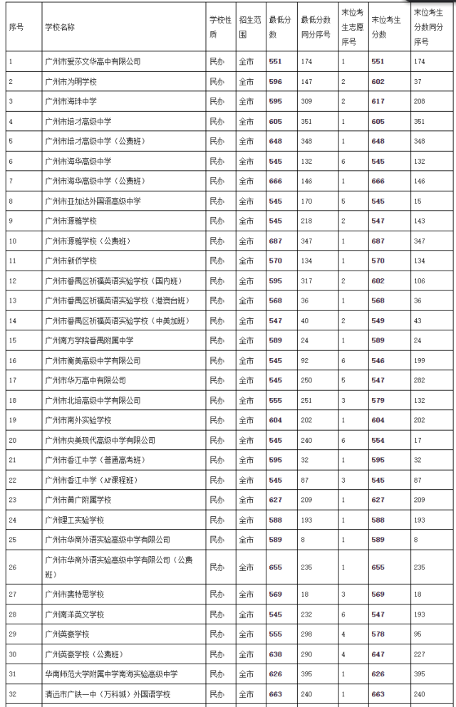 2023年广州市高中阶段学校招生第四批次普通高中学校录取工作于7月15日进行,现将录取分数公布如下: