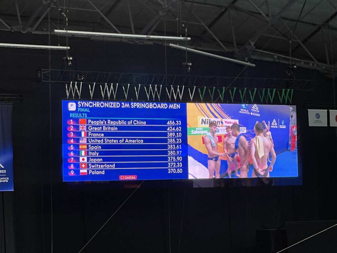 2023年世界游泳锦标赛15日在日本福冈继续进行,在刚刚结束的跳水男双三米板决赛中,中国队组合王宗源/龙道一默契十足,空中动作和入水效果都很不错,6跳过后以456.33分夺得金牌,这也是中国跳水队今天收获的第三枚金牌。