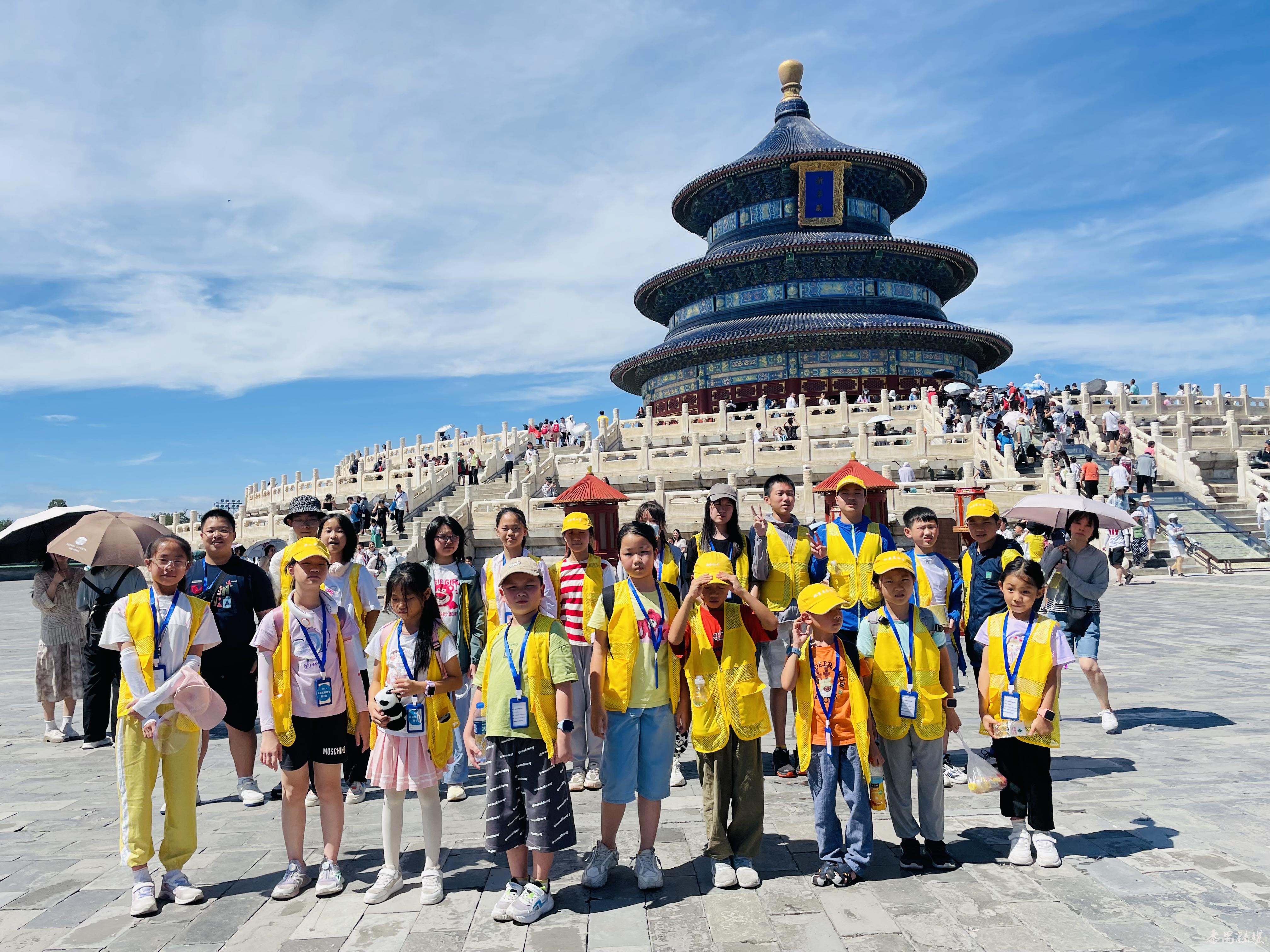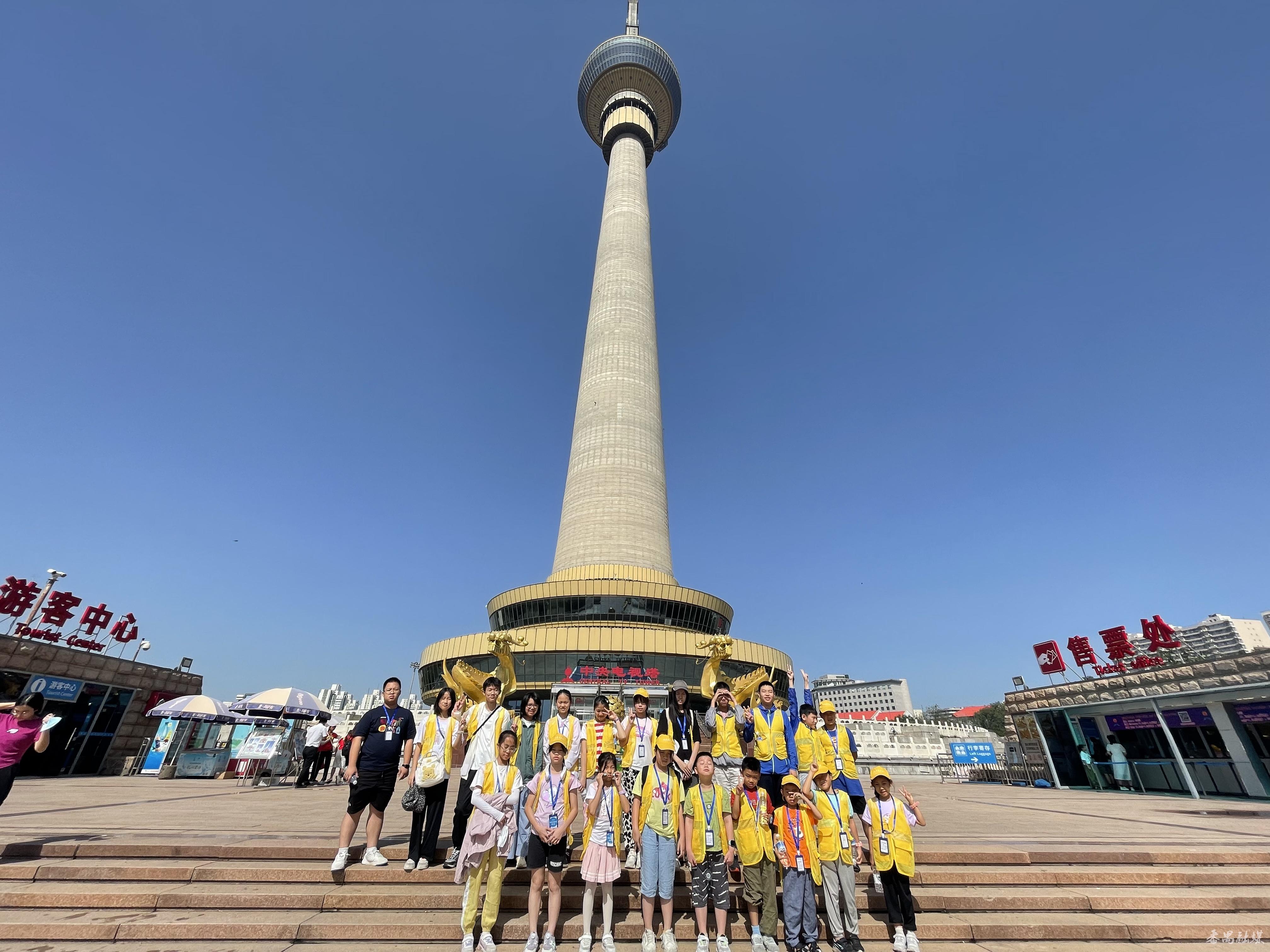 7月14日,北京研学团21名小学员在导师的带领下走进央视,探秘405米高的中央电视塔,了解新闻联播的制作。走进天坛公园,领略中华文明历史。