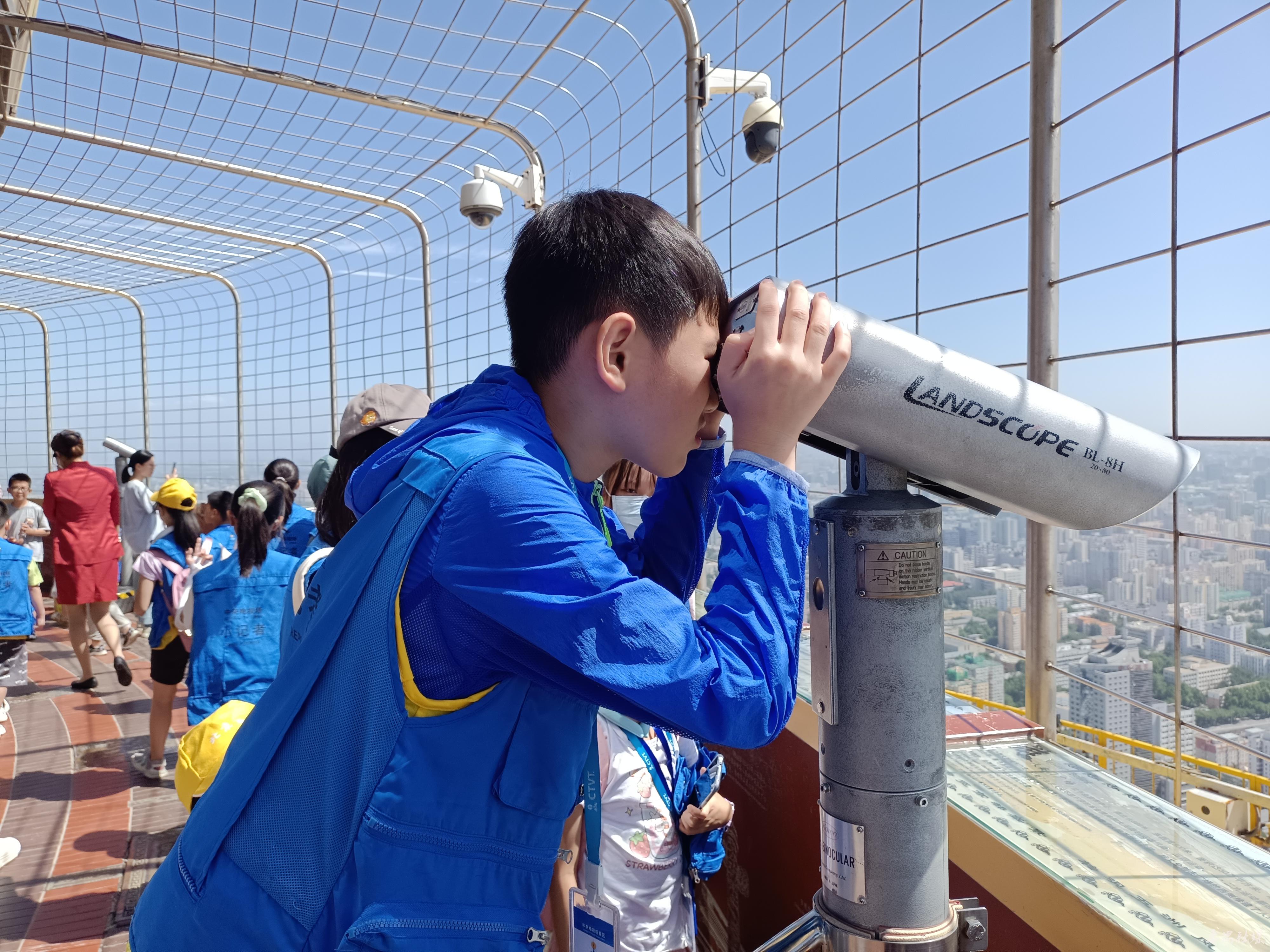 小记者登上电视塔露天观光层眺望北京城市风光