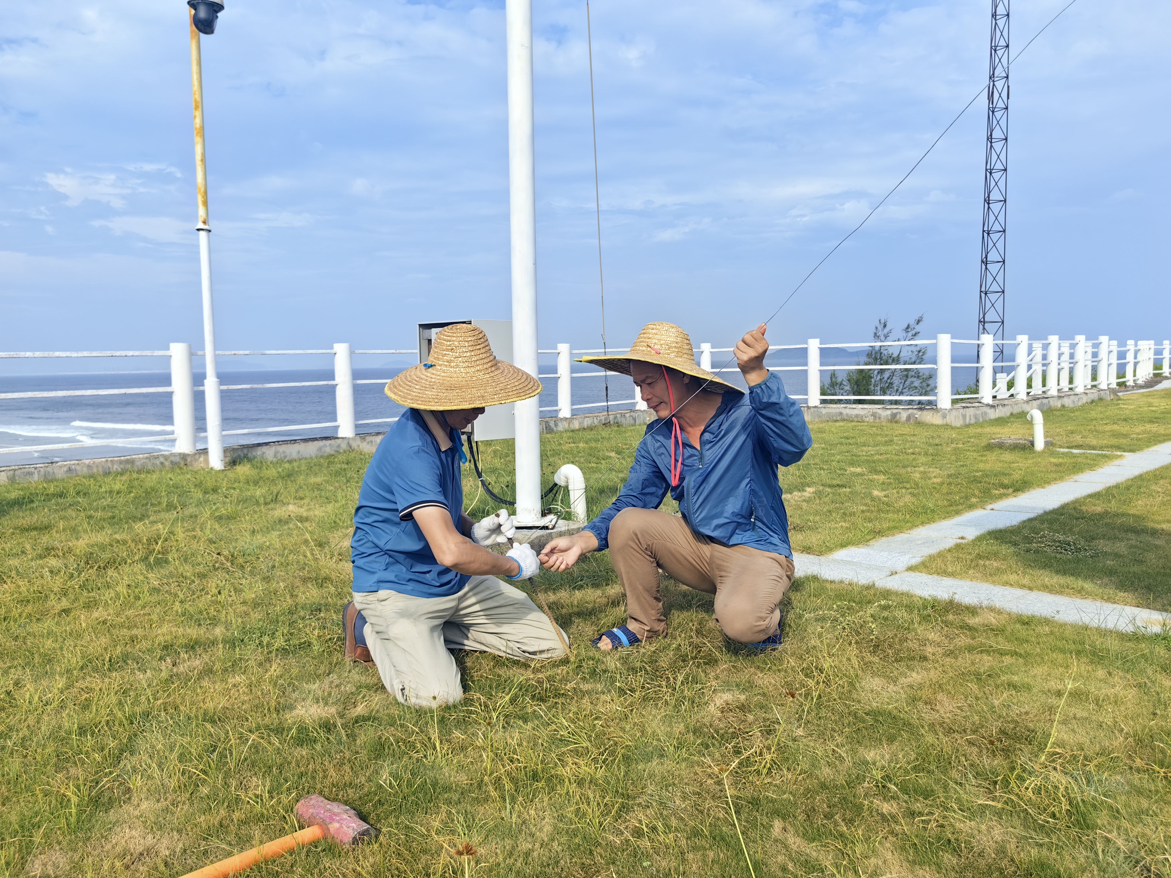 7月16日,台风影响前,广东省茂名气象人提前做好应对准备,在位于南海之滨的博贺海洋气象观测站加固站内仪器设备。