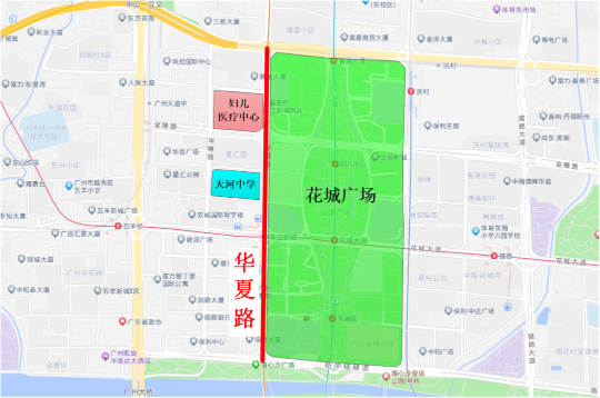 华夏路位于天河区花城广场西侧,为南北走向道路,是珠江新城网格状路网中重要的纵向道路。道路两侧分布有商业区、医院、学校等,人、车流量都很大。对此,广州交警采取了优化路口交通设施和标线、增设机动车减速让行标线和非机动车等待区、增设非机动车让行标线等优化措施。