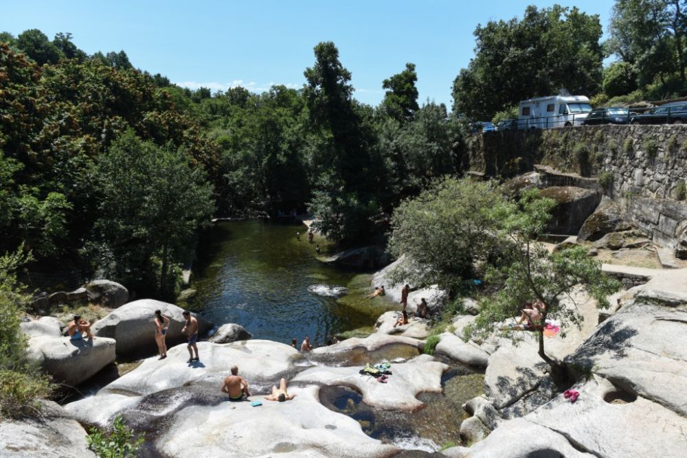 7月9日,人们在西班牙卡塞雷斯的一处天然游泳池消暑。新华社发(古斯塔沃·巴连特摄)