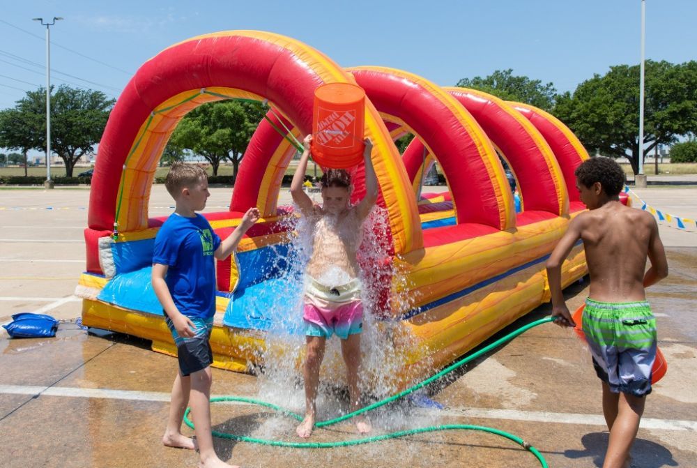 6月27日,在美国得克萨斯州达拉斯市郊,儿童在玩水。新华社发(田丹摄)
