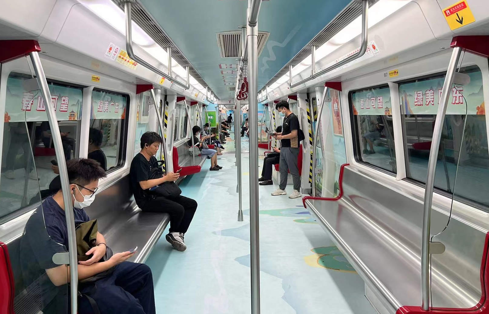 据悉,本次“生态文明号”地铁专列以“春山可望,绿美广东”为总主题,每节车厢还精心设计了独具特色的分主题。旨在倡导公众爱护生态、崇尚自然,践行绿色低碳生活,从我做起、从小做起,为保护生态环境贡献力量,齐心协力建设人与自然和谐生的现代化。
