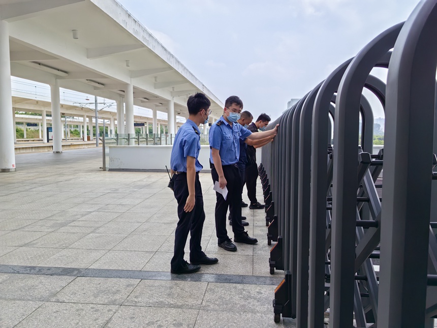 湛江西站组织开展联合设备检查,重点对易坠落物品加固。