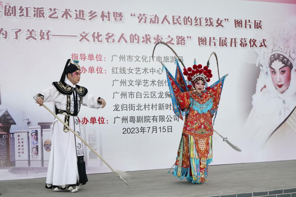 粤剧是世界级非物质文化遗产。7月15日,红线女艺术中心、广州文学艺术创作研究院携手广州粤剧院有限公司,联合白云区龙归街北村村委会共同主办粤剧红派艺术进乡村活动。为期10天的“劳动人民的红线女”图片展、“为了美好——文化名人的求索之路”专题展览亦同步举办。