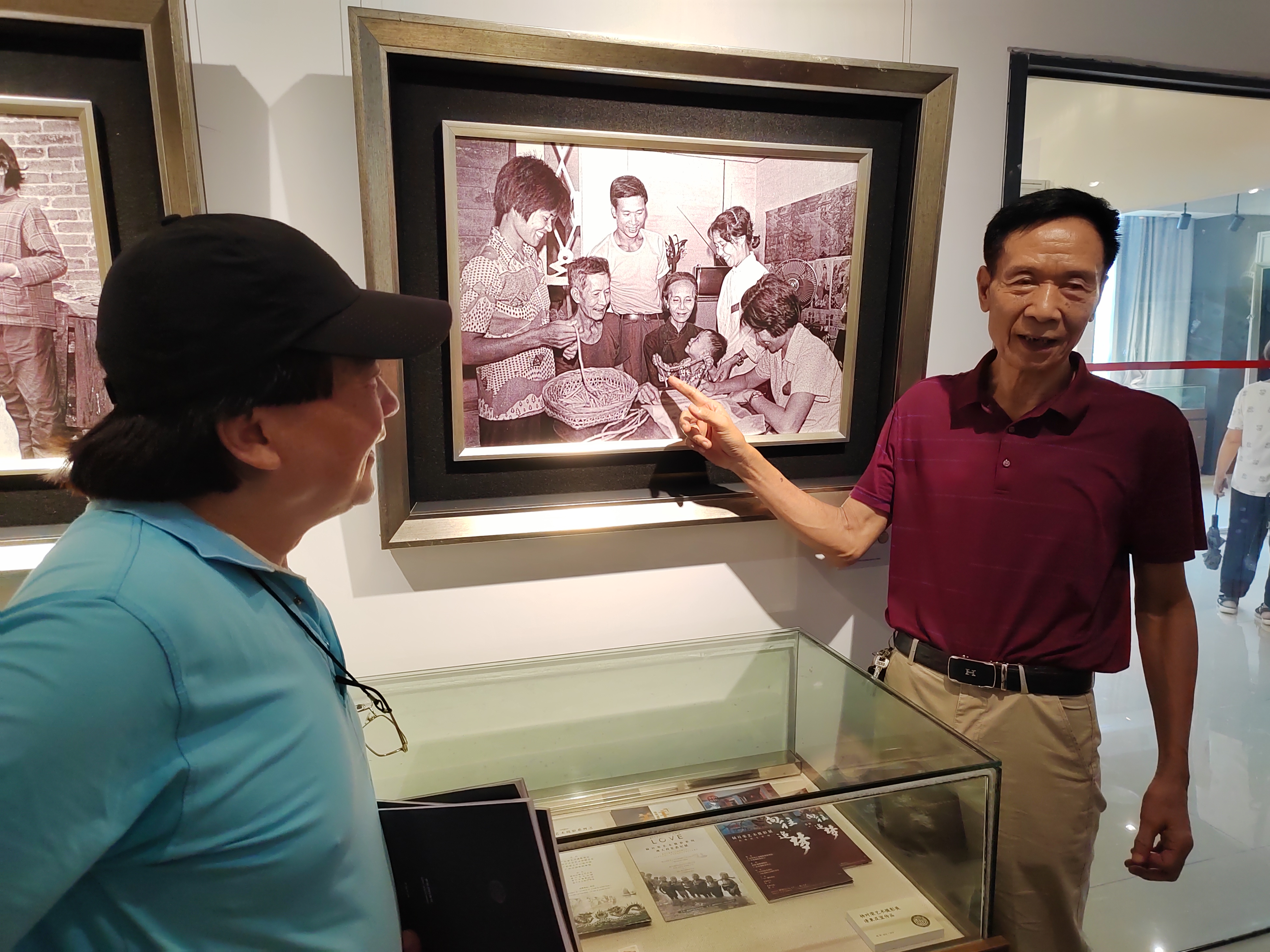 7月18日上午,在石榴岗路海珠区国家档案馆9楼的展厅里,一群阿公阿婆拥簇在满墙的照片前,激动地说个不停。