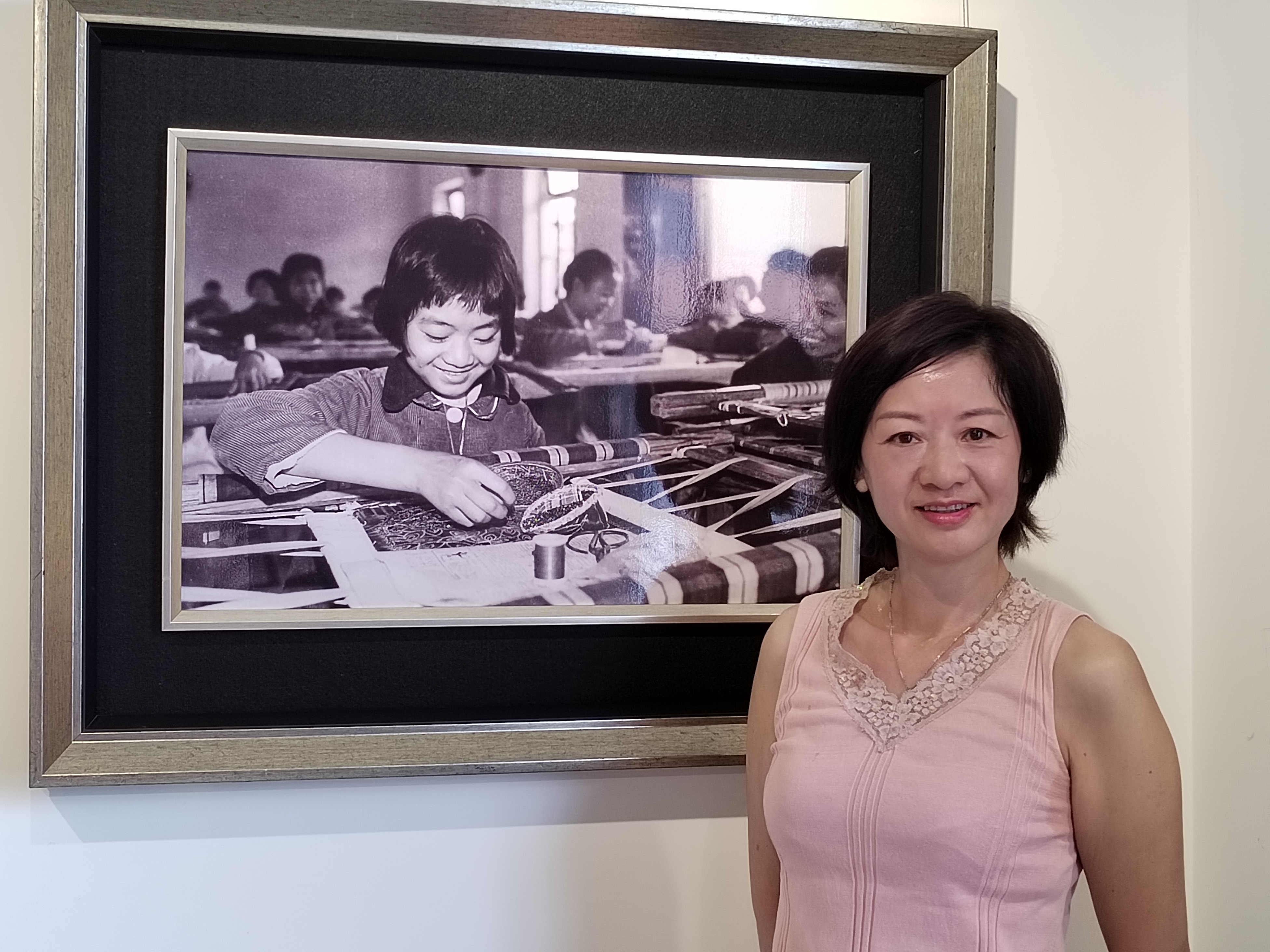 女士名叫朱雪梅,照片里,她坐在一张桌子前,忙碌地操作着广绣穿珠的工序,稚嫩的脸上,带着甜甜的笑。“那时候我11岁,四年级,放学以后有空,就去妈妈做工的工厂帮她做点事。当时也觉得挺累的,但是也挺开心,可以赚钱啊”,朱雪梅说,“一下子都四十年了,我都退休了!”她说,当时知道有人给自己拍了照片,但一直没看到过。十来年前,与杨对荣熟识的自己的九姨黄玉萍在摄影画册上看到这张照片,说:“这不是你吗?”